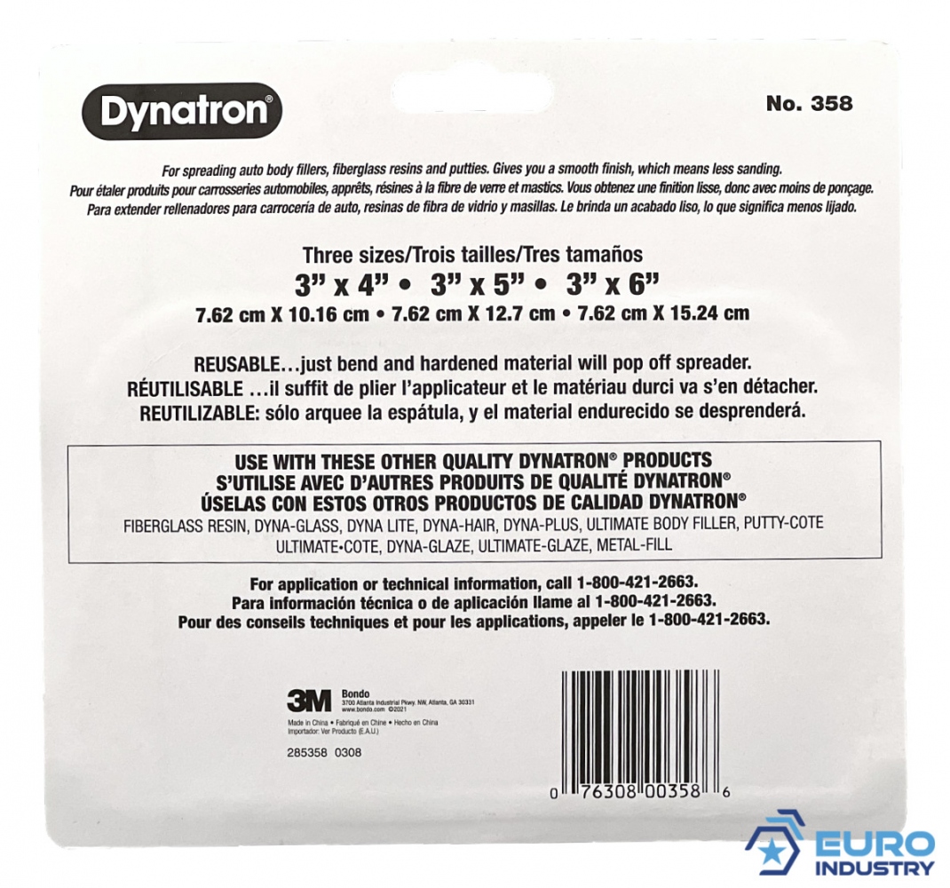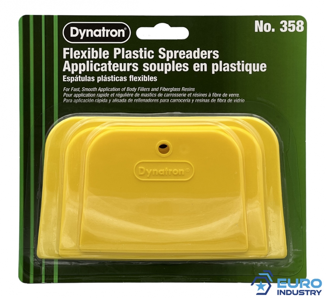 3M ™ plastic spreaders cardsEasy cleaningClean, straight edge for precise handlingIdeal for processing 3M leveling compoundsThe stiff yet flexible Dynatron ™ spreaders are ideal for applying and spreading filler material.With the Dynatron ™ spreaders, you can apply filling compounds evenly to a surface.The clean edge ensures precise work, and the smooth surface is easy to clean, often by simply breaking off the hardened filler residue, so that the spreaderis immediately ready for use again.Color yellowPack of 3 pieces1 piece: Big 152mm x 76mm1 piece: Medium 127mm x 76mm1 piece: Small 101mm x 76mm3M ID: 7000045476 Information on product safety (Manufacturer, Contact)3M Deutschland GmbH, Carl-Schurz-Straße l, 41453 Neuss, Deutschland, 02131-14-2914 / 0, , www.3m.com/msds