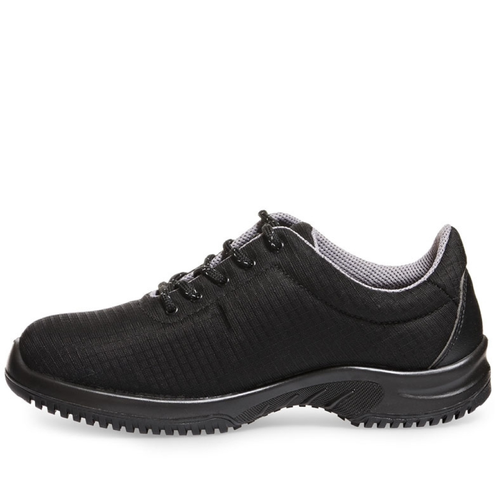 Technical DataStandard: CE, EN ISO 20345:2011, S3, SRCMaterial: Breathable textileColor: blackSafety class: S3Toe cap: Steel toe capMidsole: Foamed PU midsoleWalking Sole: Non-slip TPU walking soleInsole: Replaceable Soft Comfort insole M (article no. )Size: 35-48CharacteristicsSanitized treatedAntistaticBreathable lining with Silver PointInstep area with lacingMetalfree penetration resistanceSuitable for hygienically demanding areas