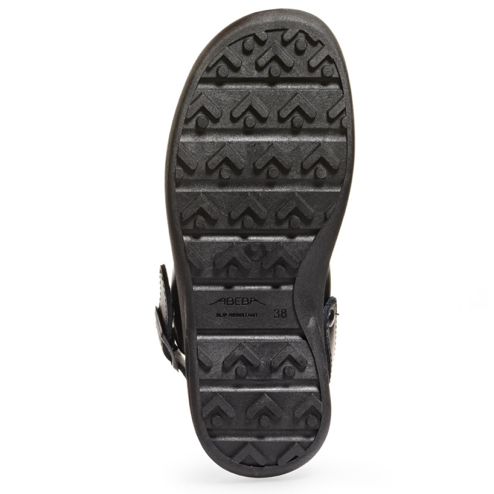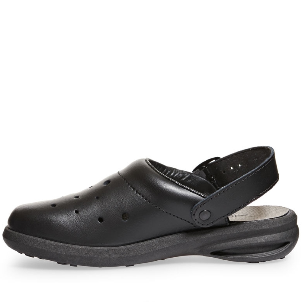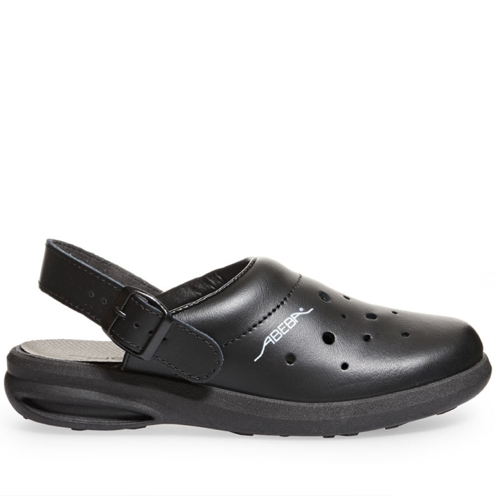 Technical DataStandard: CE, EN ISO 20347:2012, A, E, FO, SRC, TÜV GS-tested safety DIN 4843 part 100 paragraph 3.1v.8/93Material: Smooth leather, perforatedColor: blackSafety class: OBToe cap: noWalking Sole: Non-slip TPU walking soleInsole: Replaceable acc Wave insole (article no. )Size: 35-48CharacteristicsSanitized treatedAntistaticHeel strap foldable, adjustableKeywordsAbeba, safety shoes, work shoes, work wear, easy