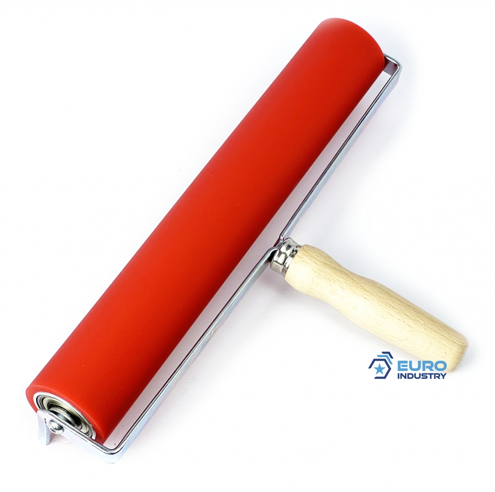 Professional Ink-and Press Roller of 50mm diameter and 300mm width with support.An ever increasing demand in the graphics industry, handicrafts and for the very professional artist area for even higher quality inking and pressure rollers prompted us to revise them.In addition to the already very good axle bolt bearings in the polyamide bearing, there are now the well-proven ABIG inking and pressure rollers with ball bearings and continuous aluminum axle.Aluminum core with the special rubber roller (water and oil resistant)These rollers are also well suited for extremely high pressure loads when working in the craft sector.Technical information:Ink-and Press roller Ø 50mmWidth: 300mmAluminum axle.Ball bearings.Support feet.Weight: 961g. Information on product safety (Manufacturer, Contact)ABIG, Im Dinkelacker 18, D-72218 Wildberg-Sulz, GERMANY, 0049 (0)7054.8149, , www.abig.de