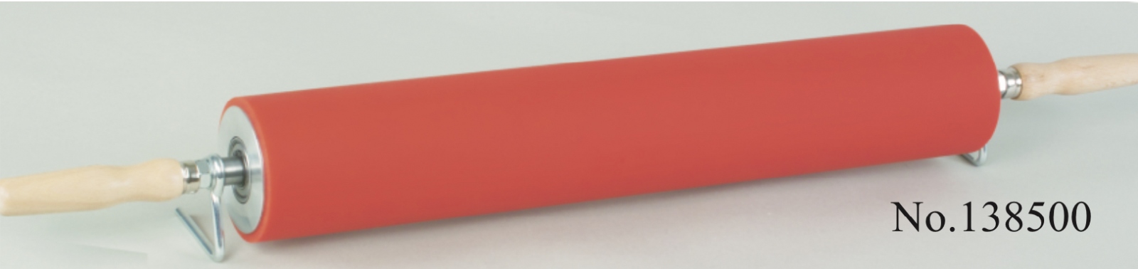 High professional Ink Roller respectively Brayer of 87mm diameter and 500mm width.Strong flat iron holder, zinc plated, with beechwood handle on both sides.Aluminum tube with 2 ball bearings for the axle. The rubber is water and (limited) oil resistant. Two stands keep the roller from contact with the ground, when the ink roller respectivly brayer is not in use.The stands can be removed by using the wrench coming with.Then the ink roller respectively brayer can be used as press roller.This heavy Ink Roller respectively Brayer is meant for the high professional use by artists, printmakers and graphic artists.The roller cover is oil-resistant to a certain extent, so it can be used in all possible colors, etc. Please always keep the roller clean and do not leave it in solvent.Technical information:Ink roller Ø 87mmWidth: 500mmCircumference: 27cmGalvanized flat iron support 25×6 mm.Wooden handle on both sides.Rubber thickness 8mm, water and (limited) oil resistant.Aluminium tube.Axle is running in 2 ball bearings.Removeable stands with enclosed wrench. Weight: 3790g Information on product safety (Manufacturer, Contact)ABIG, Im Dinkelacker 18, D-72218 Wildberg-Sulz, GERMANY, 0049 (0)7054.8149, , www.abig.de