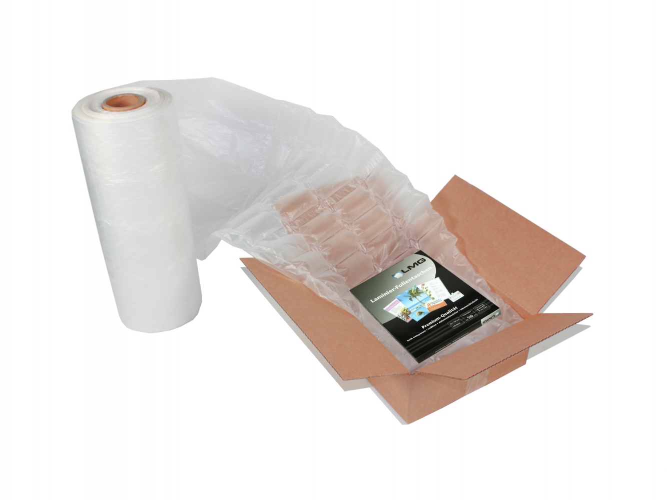 Air cushion film roll with square cushions, 400×320 mm, 300m longThe air cushion foils for the production of air cushions. The cushion size is 400 x 310 mm with a length of 300m. Suitable for LMG-AWPACK-005 and and all common WiAir machines.The air pillows are clear transparent, anti-static, environmentally friendly and non-toxic. The roll has a running length of 300 m and produces square air cushions.CharacteristicsAir cushion dimension: 400 x 320 mmAir cushion size (normally inflated): approx. 370 x 250 mmFoil length: 300mSquare cushionsMaterial: HDPEQuantity: 1,200 air cushionsIdeal packaging protectionEndless air cushion productionEnvironmentally friendly filling materialEasy handlingVariable useSuitable for air cushion machine AWPACK-005, and all conventional air cushion machines from WIAirApplication areasEdge protectionWhether straight, curved or angular edges, our air cushion cushions protect your goods against transport damage.Void fillAir cushion cushions are the quick, resource-saving solution for void filling so that your goods are safely stored in the carton.WrapBubble pillows are predestined to protect the delicate goods to be shipped around.FixAir cushion pillows secure your products securely so they can find their way to your customers without damageSurface protectionOn the way to your customers, the air cushion cushions protect the sensitive surface of your goods from scratching and impact damage. Information on product safety (Manufacturer, Contact)r&b Laminiersysteme Handelsgesellschaft mbH, Gewerbestrasse 27, 21279 Hollenstedt, GERMANY, +49 4165 2167-0, , www.rundb.de