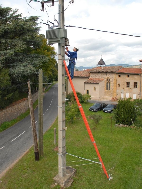 Helios® CCF insulating ladder, rope operated, 2 segments, 18 rungs, max 4,0mHELIOS 2 or 3 section fiberglass extension ladder has non-conductive siderails making this ladder safe for live-working.Product FeaturesClosed profil with rounded corners make it rigid & light2 segments with 9 rungs eachHeavy Duty extruded rope operated rung lock10 mm diameter rope centered and positioned on the operator side, breaking strength 1,500 daN“D” shaped rungs with “ULTRA-GRIP” ribbed surface, 0.3 mm deepUnique assembly technique extends product lifeFlat surface rung, 31 mm deepErgonomic rung spacing of 250 mmOrange coloured glass reinforced composite profileLow-friction nylon coated guidesRibbed rubber non-slip feet with drainage holes100 mm diameter wall wheelsRegulatory ComplianceThe Helios range is fully complaint to EU safety standard EN50-528The only ladder on the market marked Live working-Low Voltage <1,000 V a.c /1,500 V d.c.Dielectric test report - APAVE 6543040-001-1Full Product certification LNE N120088DimensionsFolded length: 2,5mExtended length: 4,0mReminder: compliance with current standards All roller ladder models with AUDINNOV safety platform are compliant with PIRL NF P93.353 and EN 131-7.These standards cover portable scales with an integrated work platform used as a means of access at height to reach the workstation constituted by the platform.These standards are essential to define the characteristics of these equipments to prevent accidents, often serious, sometimes fatal.100% Quality Made in France Information on product safety (Manufacturer, Contact)Audinnov, ZA du Pasquier, 3 - 71800 Varennes sous Dun, FRANCE, (33) 03 85 28 01 41, , www.audinnov.fr
