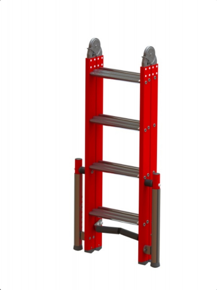 DOUBLE NON-CONDUCTIVE ARTICULATED LADDER FOR LOW VOLTAGE WORKINGProduct Features2 working configurations: extension ladder or stepladder« Ultra-Grip » double rungs on the base sectionWorking height of 1m or 1.25m depending on the modelIntegrated and practical handrail/carrying handleHigh-strength build with closed stile profilesFits smoothly through standard door width of 700 mmSafe and stable position for work in stairwellsEasily transportable: sized to fit in compact vehiclesCan be used to access low-level utility pole circuit breakersA complete range of optional accessories:Rubber cushioned V-shaped pole gripClam cleats and rope kit for securing the bottom of the ladder (optional: product code 00802076)2 ladder levellers for uneven surfacesRegulatory ComplianceThe Helios range is fully complaint to EU safety standard EN50-528The only ladder on the market marked Live working-Low Voltage <1,000 V a.c /1,500 V d.c.Dielectric test report - APAVE 6543040-001-1Full Product certification LNE N120088DimensionsFolded length: 1,62 mExtended length: 2,95 mTransport dimenssions: 164x58x15 cmWeight: 12,8 kg100% Quality Made in France