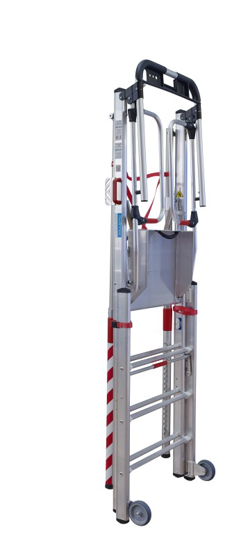 Audinnov 302312 PIRL UltraLight® 2.0 LX02/2BRX platform ladder fixed size 1,5-2,2mThe Audinnov Pirl is an ultralight, portable platform ladder. With a weight of 14kg it is perfect for field work.The ladder can be set up within a few minutes, garantuees high safety standard and has an extra large working platformfor a comfortable working experience.Technological advantagesEasy and fast openingFront legs with autoamtic openingUltra-light© aluminium platformFront Extension PartD shaped rungs with 31mm flat surface2 Transport wheels with 125mm diameterIntegrated tool holder basket in the hand railHinged safety gate for easy access (Audinnov patent)Fast interlockingMaterial: AluminiumEN 131.7 compliantFeaturesSIMPLE: Opens and closes as easily as a step ladder, one movement opens and positions the 2 front legs ensuring stabilityADAPTABLE: Front extension legsadjustable separately in 30 mm incrementsfor the TX models (Audinnov patent)COMFORT: Extra-large working platform with Ultra-grip© surface (420 x 480mm)D shaped rungs with 31mm flat surfaceSAFE:Hinged safety gate for easy and safeaccess (Audinnov patent)Integrated tool basket in the handrailLoad weight capacity 150 kgDimension and weightFolded size: 1,86 x 0,75 x 0,22mWorking height: 1,5m / 2,2mPlatform height: 0,5mOnly 14 Kg