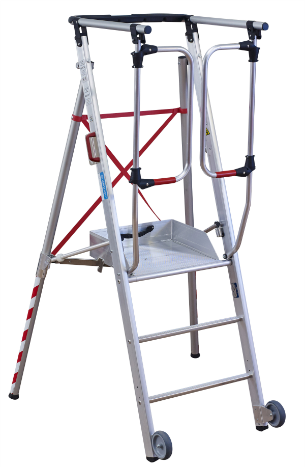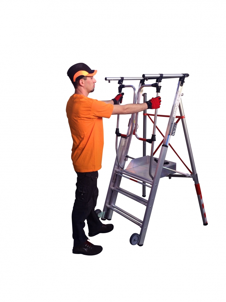 Audinnov 302313 PIRL 2.0 UltraLight® LX03/3BRX platform ladder, fixed size with 3 rungsThe Audinnov Pirl is an ultralight, portable platform ladder. With a weight of 15kg it is perfect for field work.The ladder can be set up within a few minutes, garantuees high safety standard and has an extra large working platform for a comfortable working experience.Technological advantagesStandard: ULTRALIGHT NF 93.353/2009 et EN 131.7Easy and fast openingFront legs with autoamtic openingUltra-light© aluminium platformFront Extension Part3 D shaped rungs with 31mm flat surface2 Transport wheels with 125mm diameterIntegrated tool holder basket in the hand railHinged safety gate for easy access (Audinnov patent)Fast interlockingMaterial: AluminiumEN 131.7 compliantDimension and weightFolded size: 2,14 x 0,75 x 0,22mWorking height: 1,75m / 2,45mPlatform height: 0,75mWeight: Only 15Kg FeaturesSIMPLE: Opens and closes as easily as a step ladderNo risk of pinching its fingers one movement opens and positions the 2 front legs ensuring stabilityADAPTABLE: Front extension legsadjustable separately in 30 mm incrementsfor the TX models (Audinnov patent)COMFORT: Extra-large working platform with Ultra-grip© surface (420 x 480mm)D shaped rungs with 31mm flat surfaceSAFE:Hinged safety gate for easy and safeaccess (Audinnov patent)Integrated tool basket in the handrailLoad weight capacity 150 kg