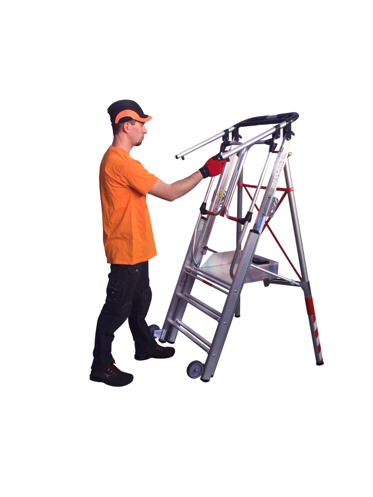 Audinnov 302315 PIRL Alu UltraLight® 2.0 LX05/5BRX platform ladder, fixed size with 5 rungsThe Audinnov Pirl is an ultralight, portable platform ladder. With a weight of 18kg it is perfect for field work.The ladder can be set up within a few minutes, garantuees high safety standard and has an extra large working platform for a comfortable working experience.Technological advantagesStandards: NFP 93,353 et EN 131,7Easy and fast openingFront legs with autoamtic openingUltra-light© aluminium platformFront Extension Part5 D shaped rungs Ultragrip with 31mm flat surface2 Transport wheels with 125mm diameterIntegrated tool holder basket in the hand railHinged safety gate for easy access (Audinnov patent)Fast interlockingMaterial: AluminiumEN 131.7 compliantFeaturesSIMPLE: Opens and closes as easily as a step ladder, one movement opens and 2 front legs ensuring stabilityADAPTABLE: Front extension legsCOMFORT: Extra-large working platform 5 rungs with Ultra-grip© surface (420 x 480mm)D shaped rungs with 31mm flat surfaceSAFE:Hinged safety gate for easy and safeaccess (Audinnov patent)Integrated tool basket in the handrailLoad weight capacity 150 kgDimension and weight:Folded size: 2,68 x 0,75 x 0,22mWorking height: 2,2m / 2,9mPlatform height: 1,25mOnly 18 Kg Information on product safety (Manufacturer, Contact)Audinnov, ZA du Pasquier, 3 – 71800 Varennes sous Dun, FRANCE, (33) 03 85 28 01 41, , www.audinnov.fr