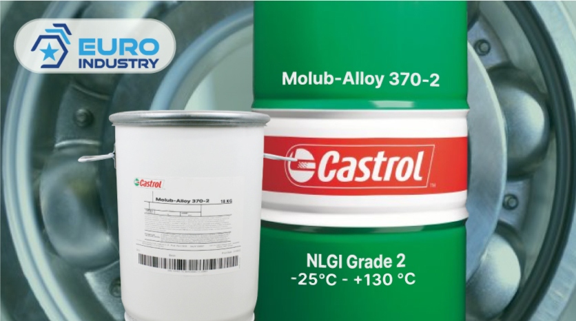 Castrol Molub-Alloy™ 370-2 High performance grease with MoS2 solid lubricantsMolub-Alloy™ 370-2 (previously Olistamoly 2) is a high performance grease with MoS2 for universal applications. Due to its high load carrying capacity, it is especially suited for long-term lubrication of rolling and sliding bearings.Temperature application range: -25 °C (-13 °F) to +130 °C (+266 °F)ApplicationRolling and sliding bearings subjected to high loadsThreaded spindles and guides of hoistsOpen gears, worm gears at low speedsTie rod joints and universal joints, brake cams and spline shaftsUnder difficult operating conditions such as dust and vibrationsFor maintenance-free or low-maintenance long-term lubricationAdvantagesOutstanding load carrying capacityOptimum protection against friction and wearExtremely long lubricityResistant to hot and cold waterExtraordinary adhesionExcellent corrosion protectionProtects effectively against fretting corrosionAging-resistant and shear-stablePumpable in centralized lubricating systemsTechnical specificationsColor: blackBase Oil: MineralThickener: LithiumConsistency: NLGI Grade 2Worked Penetration (60 strokes @ 25 °C/77 °F): 0.1 mm 265 – 295Density @ 20 °C/68 °F kg/m³: 930Base Oil Viscosity @ 40 °C/104 °F mm²/s: 370Dropping Point °C/°F 210/410Volume: 5kg bucketAlso available as: 400g cartridge, 1kg can, 18kg bucket, 50kg bucket, 180kg barrelGLIS number: 15AD4DMSDS code: 469048Castrol Molub-Alloy 370 2, Castrol Molub Alloy 370-2, Castrol Molub Alloy 370 2 Information on product safety (Manufacturer, Contact)BP Europa SE, Erkelenzer Straße 20, 41179 Mönchengladbach, GERMANY, +49 800 7235 074, , www.bp.com