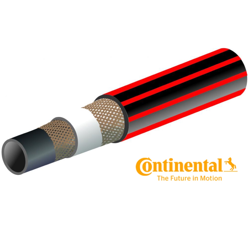 Continental Eurotrix EPDM Rubber water hoseMaterial: EPDM rubberflexColor: black/red stripesNon-kinking and non-abrasiveDurableHot water resistantResistant to a lot of watery salt solutions and a large number of chemicalsPressure support: textile threadApplication: Structural and civil engineering, industry, agriculture and horticulture.Temperature range: -40°C up to +100°CWorking pressure: 20 barInside: Ø 25mm (1”)Wall-thickness: 4.5 mmSmallest bending radius: approx. 110 mmLength: 40 metersContinental TRIX ROTSTRAHL® DN 13 PN 20 BAR / 290 PSIMade in Germany Information on product safety (Manufacturer, Contact)Continental Aktiengesellschaft, Continental-Plaza 1, 30175 Hannover, GERMANY, +49 511 938-01, , www.continental.com