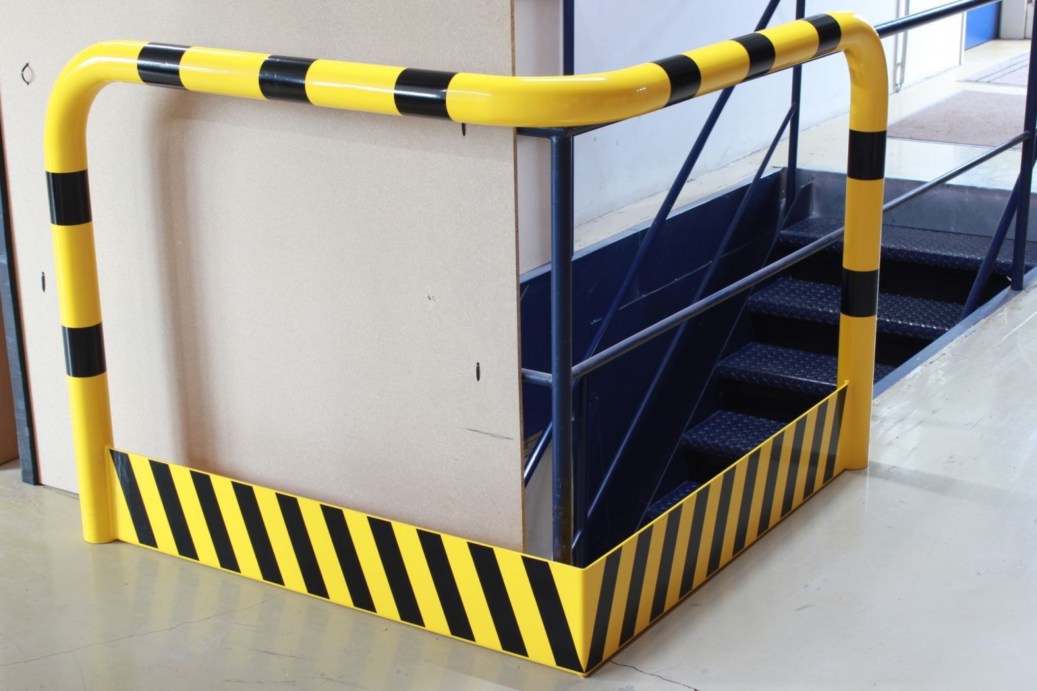 CRASH STOP by Dancop 40-70-UW Impact Corner Protection with underride guard, Black-Yellow 1000 x 1200 mmTechnical DataMaterial: SteelMeasures: 1000 (high) x 1200 (arms) mmMaterial thikness: 3,2 mmWeight: 50,0 kg DescriptionImpact Corner Protection with underride guardheight 1000 mmHeight underride guard 200 mmwith base platepipe diameter Ø 76 mmmaterial thickness 3,2 mmTÜV-certifiedCrash Stop steel impact protection The steel impact protection products are made of high grade steel and facilitate the effective protection of inventory,machines and buildings outdoors and indoors. Hazardous areas are clearly marked due to the combination of theyellow coating and the black marking strips.The beams and posts are available in 76 mm diameter.The hoop guards have been deformed with the newest bending technology – no welds!The bollards are available in the diameters 76 mm, 88.9 mm and 159 mm.The product is mounted with floor anchors that are available separately.The Hoop Protection Guards with underride protection are a perfect addition for sensible areas that requireeven a higher level of protection. The Hoop Protection Guards with underride protection are available ina variety of types and measures that makes it easy to find the best suiting product. Information on product safety (Manufacturer, Contact)Dancop International GmbH, Wilhelm-Rausch-Strasse 15, 31228 Peine-Stederdorf, GERMANY, +49 5171 585690, , www.dancop.com