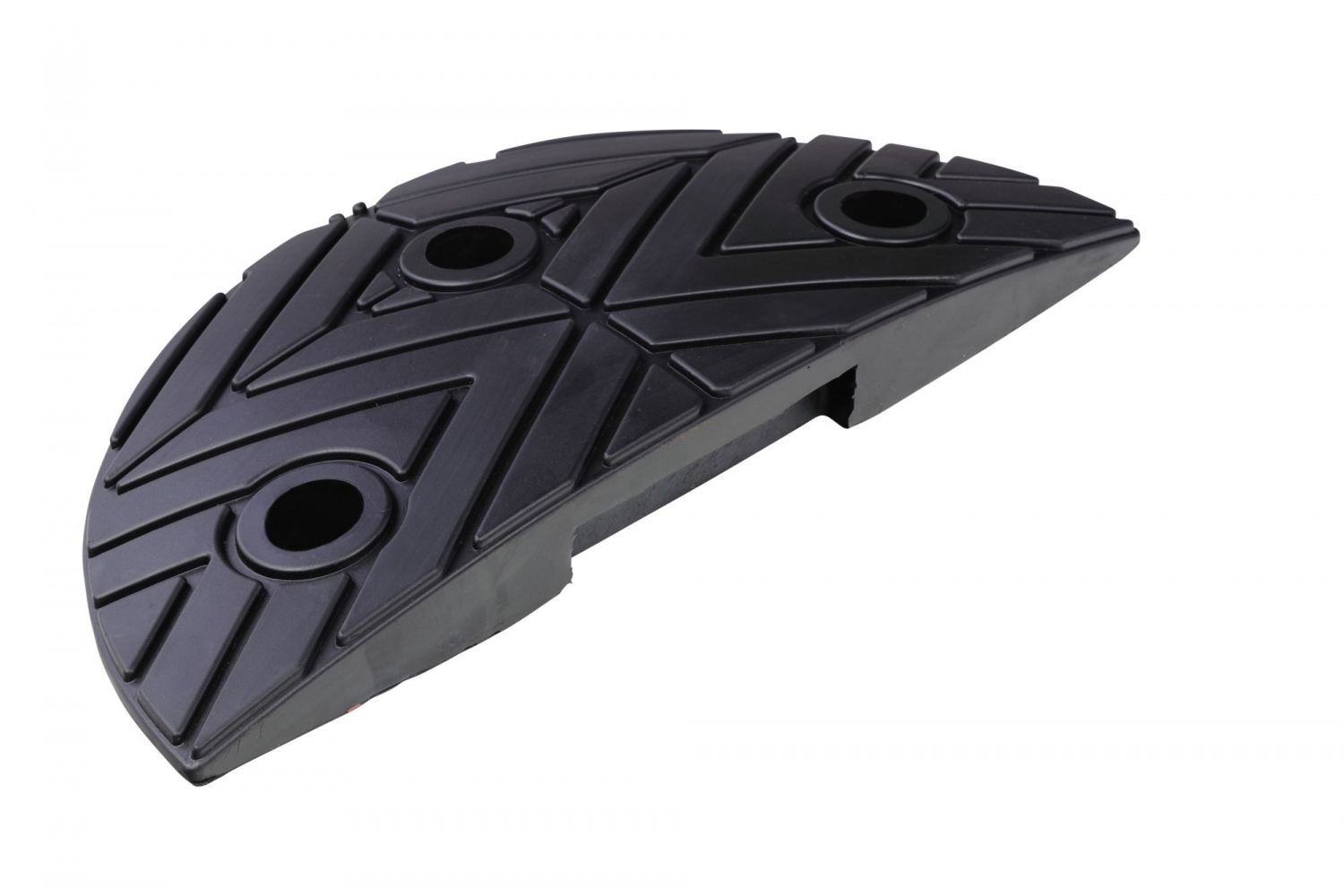 Crash Stop Speed ramp end piece, black, Height 75 mmTechnical DataModel: 47531Material: rubberColor: blackHeight: 75 mmWidth: 420 mmLength: 250 mmWeight: 3,5 kgDescriptionMade of new heavy duty rubber, self connecting in yellow-black. Centre piece with one reflector per side.Height: 50 mm or 75 mm.Recommended max. speed:50 mm: 20 km/h 75 mm: 10 km/h Information on product safety (Manufacturer, Contact)Dancop International GmbH, Wilhelm-Rausch-Strasse 15, 31228 Peine-Stederdorf, GERMANY, +49 5171 585690, , www.dancop.com