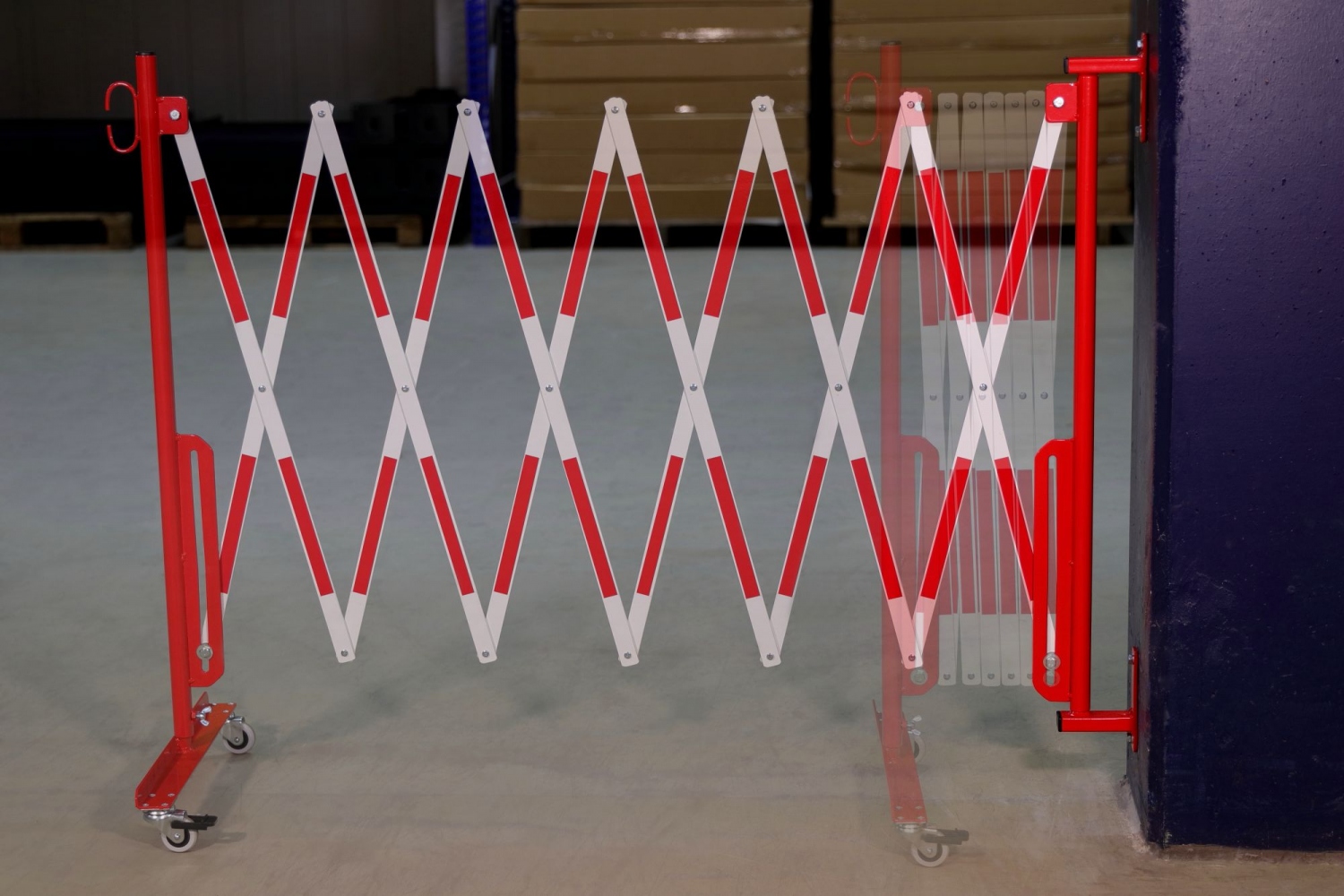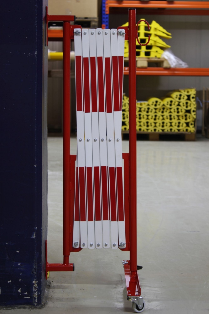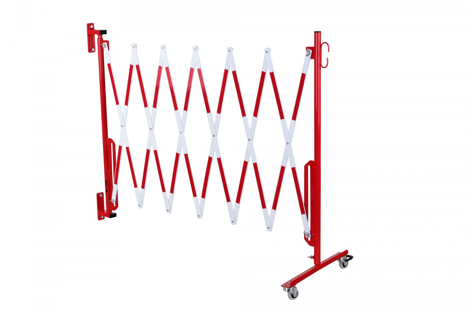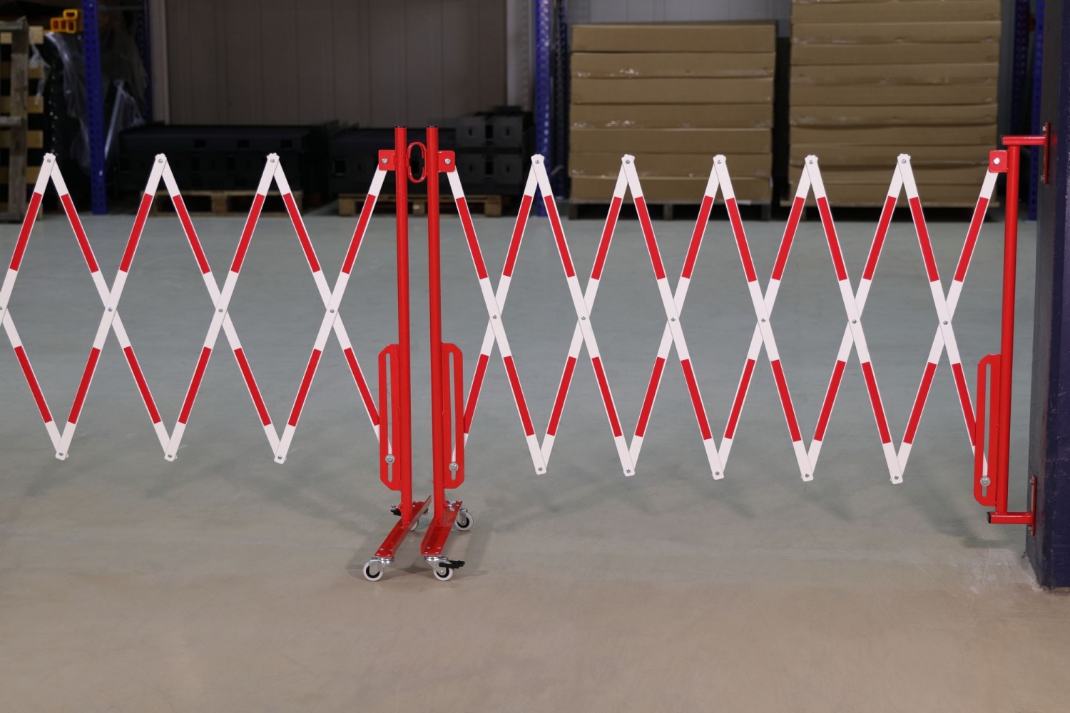 CRASH STOP 70-10W Expandng barrier with castors and wall fixing, red-white, 3600 mmExpanding barriers, steel, 1050 mm H, one side with castors (steel length 500 mm) and other side with wall fixing,powdercoated for indoor use, red-white version with double side reflecting foil, TÜV-certifiedTechnical DataModel: 70-10WMaterial: SteelWidth: 3600 mmHeight: 1050 mmFolded width total (ca.): 300 mmMaterial flat steel: 4 x 25 mmWeight: 14,3 kgDescriptionOur TÜV-certified expanding barriers are made of steel and they are ideally suited for fencing off quicklyand effectively all types of dangerous areas.Available colours: red-white version with double side reflectingfoil and yellow-black.The expanding barriers allow a space-saving storage. They are available with orwithout wheels or with our without wall mounting. Information on product safety (Manufacturer, Contact)Dancop International GmbH, Wilhelm-Rausch-Strasse 15, 31228 Peine-Stederdorf, GERMANY, +49 5171 585690, , www.dancop.com
