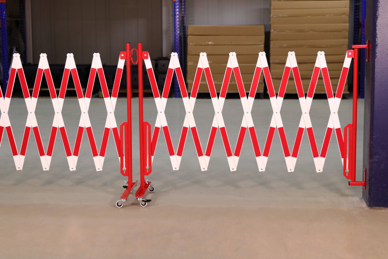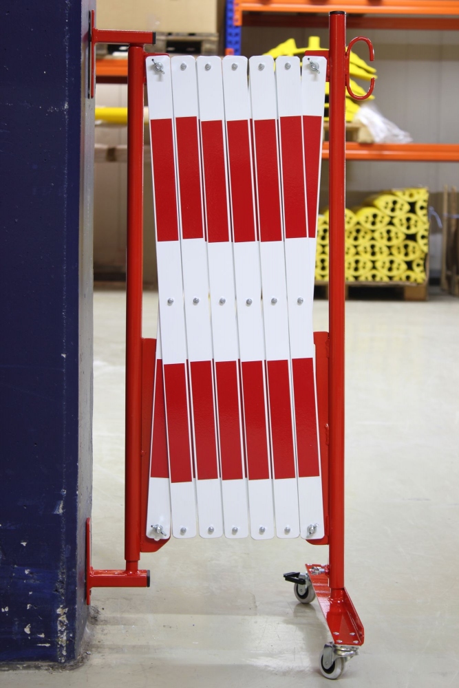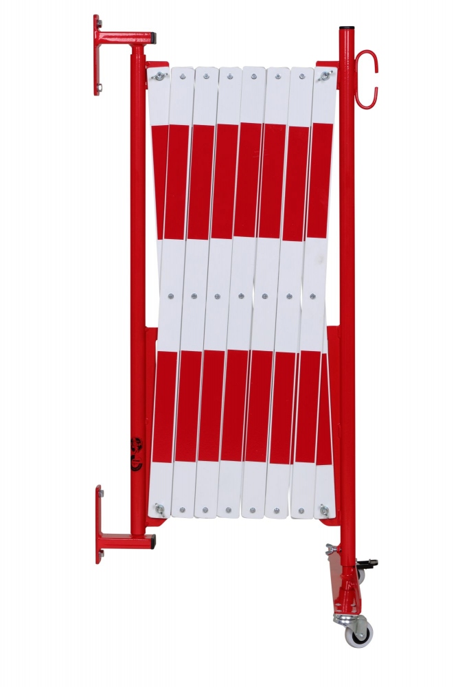 CRASH STOP 70-20W Expandng barrier with castors and wall fixing, red-white, 4000 mmExpanding barriers, steel, 1050 mm H, one side with castors (steel length 500 mm) and other side with wall fixing,powdercoated for indoor use, red-white version with double side reflecting foil, TÜV-certifiedTechnical DataModel: 70-20WMaterial: SteelWidth: 4000 mmHeight: 1050 mmFolded width total (ca.): 390 mmMaterial flat steel: 5 x 40 mmWeight: 21,6 kgDescriptionOur TÜV-certified expanding barriers are made of steel and they are ideally suited for fencing off quicklyand effectively all types of dangerous areas.Available colours: red-white version with double side reflectingfoil and yellow-black.The expanding barriers allow a space-saving storage. They are available with orwithout wheels or with our without wall mounting. Information on product safety (Manufacturer, Contact)Dancop International GmbH, Wilhelm-Rausch-Strasse 15, 31228 Peine-Stederdorf, GERMANY, +49 5171 585690, , www.dancop.com