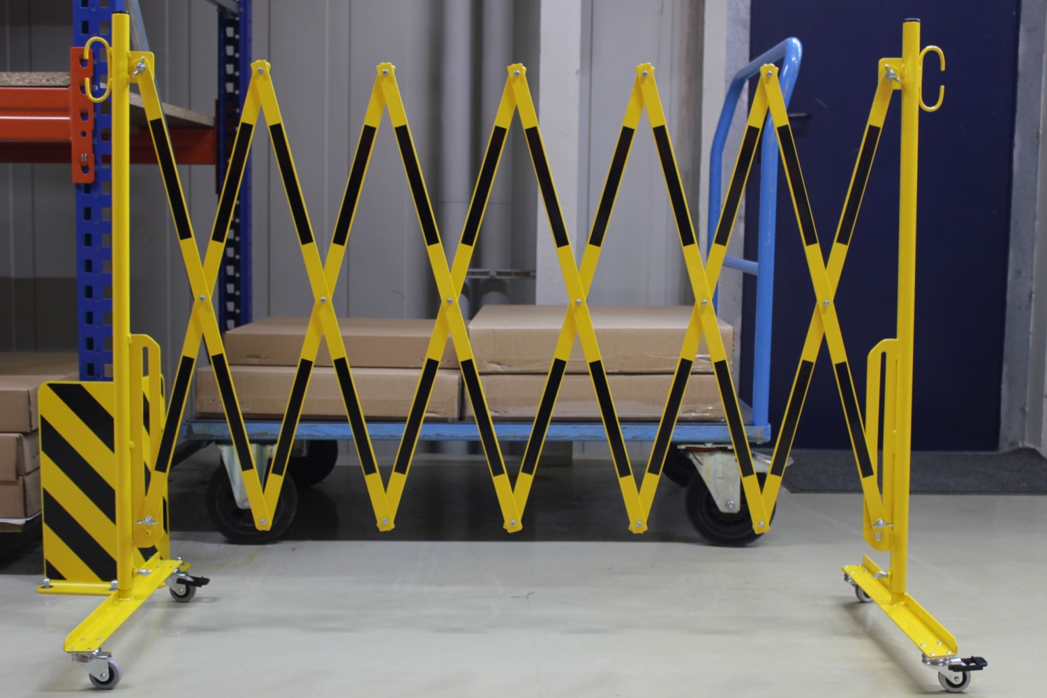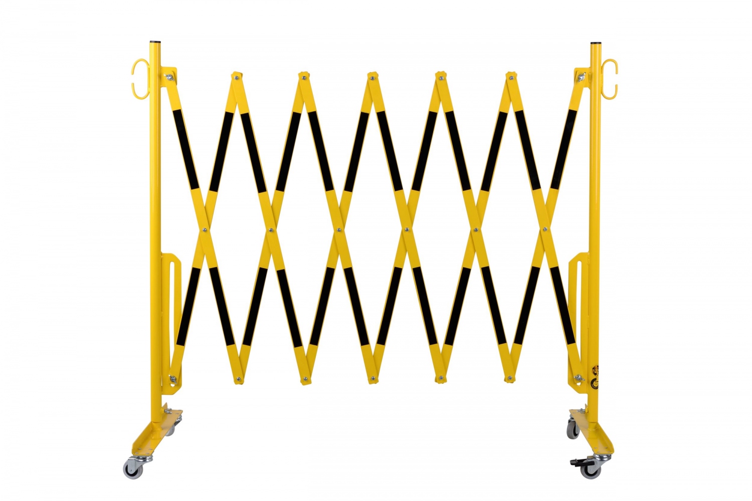 CRASH STOP 70-30R Expandng barrier with castors, yellow-black, 3600 mmExpanding barriers, steel, 1050 mm H, both sides with castors (steel length 500 mm),powdercoated for indoor use, red-white version with double side reflecting foil, TÜV-certifiedTechnical DataModel: 70-30RMaterial: SteelWidth: 3600 mmHeight: 1050 mmFolded width total (ca.): 335 mmMaterial flat steel: 4 x 25 mmWeight: 14,6 kgDescriptionOur TÜV-certified expanding barriers are made of steel and they are ideally suited for fencing off quicklyand effectively all types of dangerous areas.Available colours: red-white version with double side reflectingfoil and yellow-black.The expanding barriers allow a space-saving storage. They are available with orwithout wheels or with our without wall mounting. Information on product safety (Manufacturer, Contact)Dancop International GmbH, Wilhelm-Rausch-Strasse 15, 31228 Peine-Stederdorf, GERMANY, +49 5171 585690, , www.dancop.com
