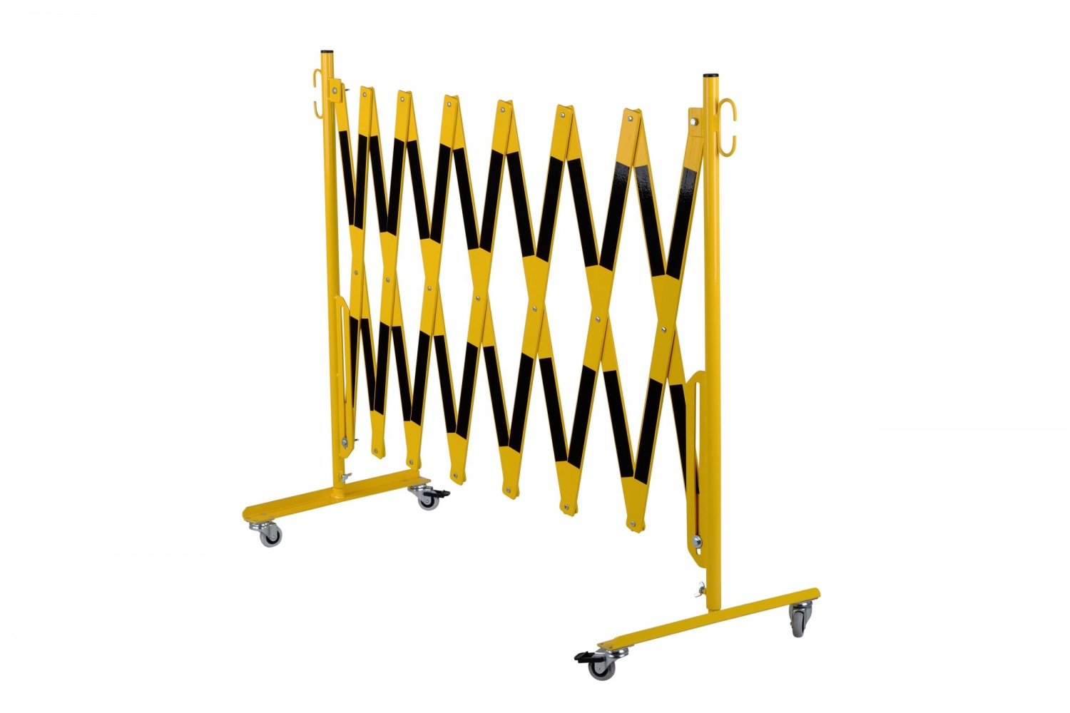 CRASH STOP 70-40R Expandng barrier with castors, yellow-black, 4000 mmExpanding barriers, steel, 1050 mm H, both sides with castors (steel length 500 mm),powdercoated for indoor use, red-white version with double side reflecting foil, TÜV-certifiedTechnical DataModel: 70-40RMaterial: SteelWidth: 4000 mmHeight: 1050 mmFolded width total (ca.): 430 mmMaterial flat steel: 5 x 40 mmWeight: 22,2 kgDescriptionOur TÜV-certified expanding barriers are made of steel and they are ideally suited for fencing off quicklyand effectively all types of dangerous areas.Available colours: red-white version with double side reflectingfoil and yellow-black.The expanding barriers allow a space-saving storage. They are available with orwithout wheels or with our without wall mounting. Information on product safety (Manufacturer, Contact)Dancop International GmbH, Wilhelm-Rausch-Strasse 15, 31228 Peine-Stederdorf, GERMANY, +49 5171 585690, , www.dancop.com