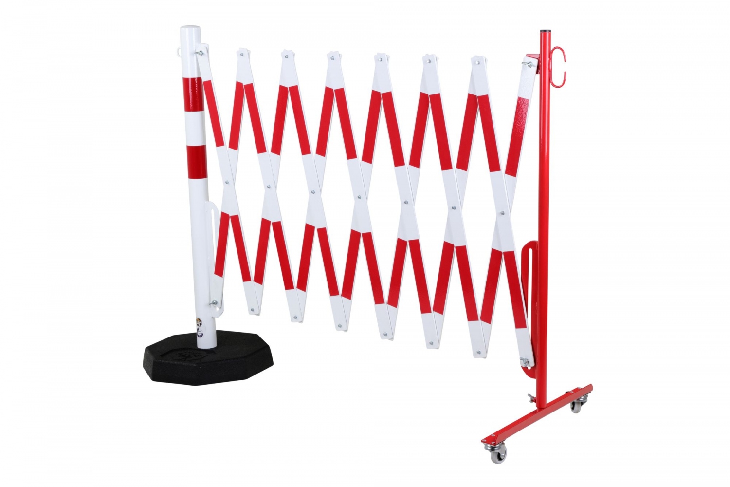 CRASH STOP 70-80 Expandng barrier castors-plate, red-white, 4.0 m