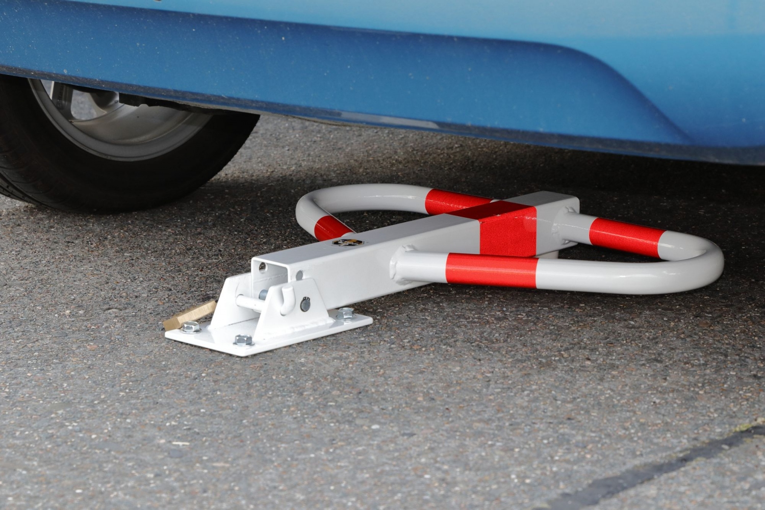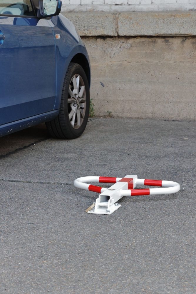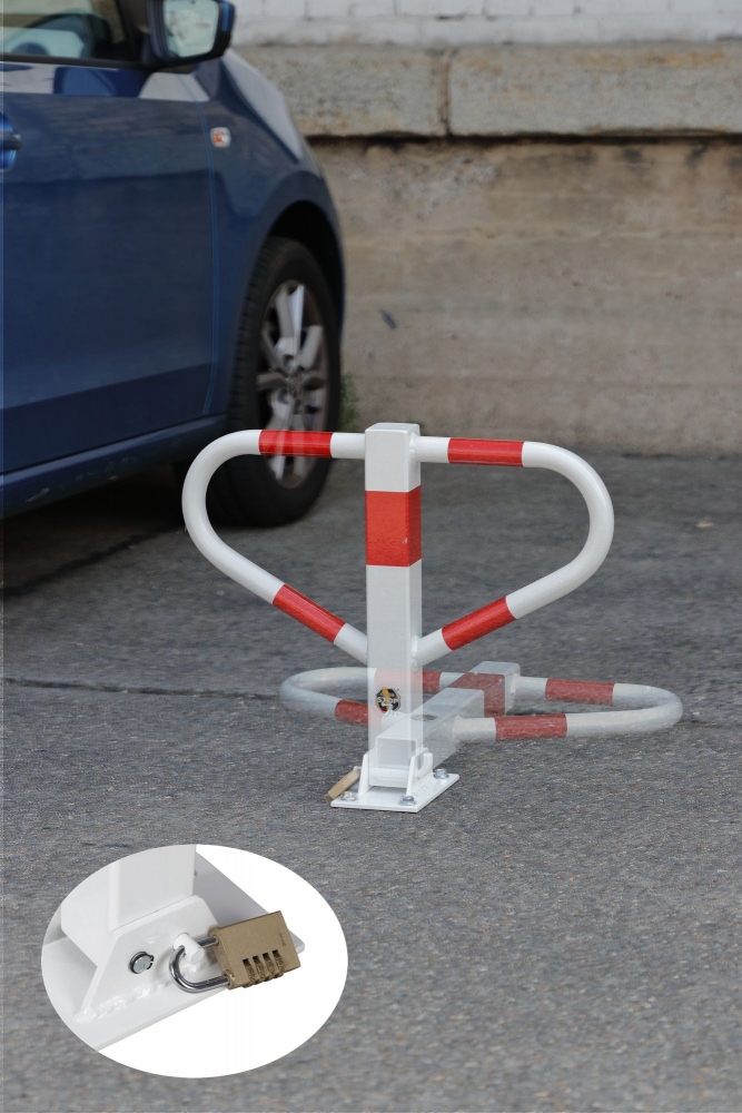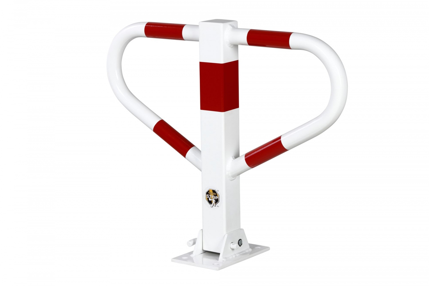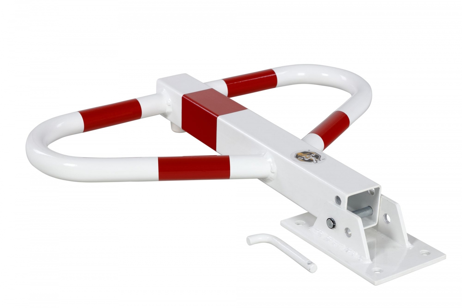CRASH STOP 90-100 Foldable parking post type butterfly, with base plate, with locking pin (padlock not included)Foldable parking post type butterfly, red-white, with red reflecting foil, galvanised, height 500 mm, width 600 mm, with base plateTechnical DataModel: 90-100Material: Steel, galvanisedHeight: 500 mmWidth: 600 mmbase plate size: 120 mm x 195 mm, 4x drill holes ø 12,5 mmWeight: 7,6 kgDescriptionThe foldable parking barriers and locking posts for flipping over are a fast and uncomplicated way to secureparking areas and drive-through areas against unauthorized use. The versions can be bolted or concreted.There is also the possibility to lock the versions with a padlock or with an integral lock.The conspicuous white-red colour with red reflecting foil allows a fast detection of the barrier to prevent damage.In the folded state, the parking barriers and locking posts can be passed without problems.The fixing material is not included in the delivery. Information on product safety (Manufacturer, Contact)Dancop International GmbH, Wilhelm-Rausch-Strasse 15, 31228 Peine-Stederdorf, GERMANY, +49 5171 585690, , www.dancop.com