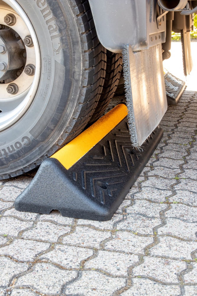 Wheel Park Stop for heavy Trucks, black rubber with yellow retroreflective warn foil, 5 x drill holes, indoor and outdoor useTechnical DataModel: HDWS 100Material: rubberHeight: 150 mmWidth: 300 mmLength: 1000mmWeight: 25,0 kgDescriptionThe heavy duty version of the wheel stop is a massive parking space restriction and manoeuvring aid for trucks, buses and other large vehicles designed for long-term use. The wheel stop prevents damage to vehicles, buildings and machinery by allowing the vehicle to roll only until the tyre is in contact with the sill.The ParkStop is a fast and uncomplicated way to organize parking spaces and to allow a gentle stopping of vehicles.To organize parking areas and to protect vehicles from damage that can result from steep parking situations or confusingwall projections. Whether parking lot, underground car park or car park, the ParkStop finds its long-term use bothindoors and outdoors.The high-quality material is UV-stable and not affected even in the cold season. In addition, the ParkStop can also bemounted on buildings and used as impact protection, e. g. in loading zones. The assembly is carried out by means ofscrews via the additionally reinforced recesses in the product.FixingPermanent fixation by 5 integrated plug receivers possible. Information on product safety (Manufacturer, Contact)Dancop International GmbH, Wilhelm-Rausch-Strasse 15, 31228 Peine-Stederdorf, GERMANY, +49 5171 585690, , www.dancop.com