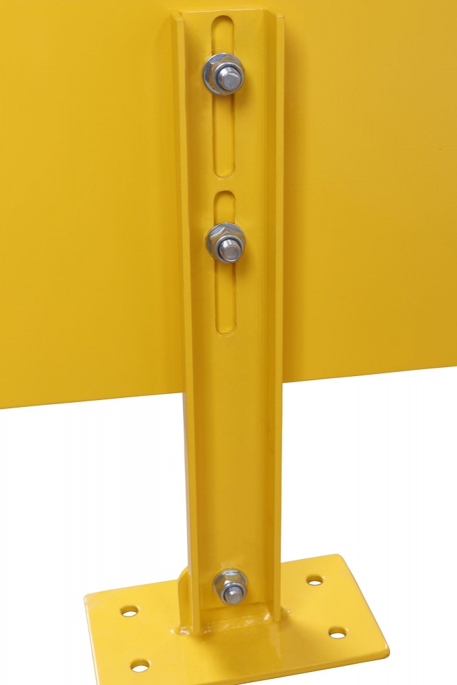 CRASH STOP by Dancop HVA-2400 Guardtrail height-adjustable, Black-Yellow, 2400 mmTechnical DataMaterial: SteelMeasures: 2400 mm x 436 x 516 mm (adjustable)Weight: 48,0 kgrail height: 300 mmgalvanised and yellow powder coated (similar to RAL 1023) for outdoor usewith black marking stripsfor floor mountingTÜV-certified DescriptionThe height-adjustable guardrail is a special solution to protect against damages in areas with slopes.The guardrail is adjustable to a level of 80 mm on a length of 2400 mm. Height adjustable with a levellingscrew, mounting with adjustable foot plates.Ground fixing material not included. Information on product safety (Manufacturer, Contact)Dancop International GmbH, Wilhelm-Rausch-Strasse 15, 31228 Peine-Stederdorf, GERMANY, +49 5171 585690, , www.dancop.com