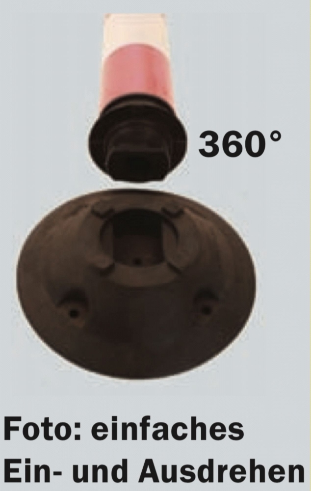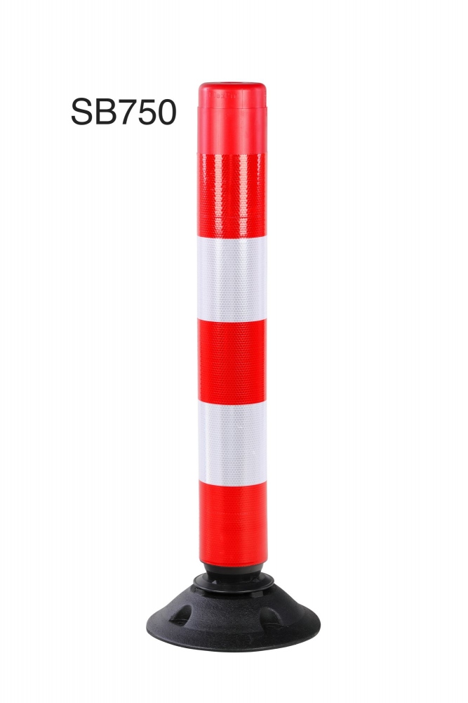 CRASH STOP SB750 Flexible Post, red-whiteFlexible Post, polyethylene, Ø 100 mm, tilts in 360° radius, self-uprising post on a rubber foot, red withwhite retroreflective RA 2 foil, rubber foot: Ø 275 x 70 mm H with 4 x drill holes of Ø 10 mm for floor mountingTechnical DataMaterial: PE – polyethyleneHeight: 750 mmFoot: ø 275 x 70 mmWeight: 2,0 kgDescriptionThe flexible posts are used for the traffic separation, routing and marking of dangerous areas.Due to the fully retroreflective film, the barrier post is very good to perceive and can easily becrossed over in an emergency without takingany damage. The guide cylinder stands up by itself. Due to the bayonet closure in the foot,the product can be removed quickly and easily. Information on product safety (Manufacturer, Contact)Dancop International GmbH, Wilhelm-Rausch-Strasse 15, 31228 Peine-Stederdorf, GERMANY, +49 5171 585690, , www.dancop.com