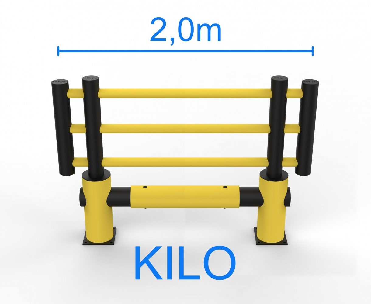 The flexible d-flexx traffic barrier „Kilo“ seperates quickly, working areas and traffic from each other. This product is delivered already pre-assembled and can be installed without further assembly activities.The outer sides are provided with an additional hand-rail to extend the protection areas.The fixing material is always included in the delivery.Technical informationHeight: 1200 mmWidth: 2000 mmBase plate: 225 x 225 mmWeight: 47,4 kgD-flexxFLEXIBLE IMPACT PROTECTIONThe flexible material is deforming and returns after a collision to its original shapeFor outdoor and indoor use100% recyclableEasy installationfixing material included in the deliveryMinimizes maintenance charges considerablyDifferent possibilities for individual application Information on product safety (Manufacturer, Contact)Dancop International GmbH, Wilhelm-Rausch-Strasse 15, 31228 Peine-Stederdorf, GERMANY, +49 5171 585690, , www.dancop.com