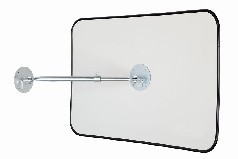 Dancop EC-RS Surveillance Rectangular mirror, Shop mirror.The TÜV-certified mirror is made of impact resistant acrylic (70% more impact resitant than glass).Description:The TÜV-certified EC is the ideal mirror to observe sales rooms and production areas.Due to its distortion free and good image quality it is a good and inexpensive solution to prevent thefts and accidents.Typ EC-RS: The EC mirror can be used outside because of the strengthening backside.Fixing:ECM is delivered with a telescopic bracket for easy installation and adjustment for a good field of view.Technical data:Mirror plate (cm)40 x 60Observation distance (m)9-15Width (mm)605Height (mm)403Depth/Length (mm)40MaterialAcrylicSurfaceUV-resistant, impact resistant to DIN ISO 179-1Frame materialPolyvinyl chloride (PVC)Frame colourblackArea of applicationIndoor useNet weight (kg)1.211Gross weight (kg)2.307Mounting locationwallMountingscrew togetherDelivery ispre-assembledNumber of mounting holes4Fixing includedTelescopic wall bracket (30-50 cm) Art.No.:747.11-2Warranty2 yearsBrandDancopApproval / CertificationTÜV-GS certifiedEclass 10.1 Nr.40020216Eclass 11.1 Nr.40020216ETIM Class CodeEC003579 Information on product safety (Manufacturer, Contact)Dancop International GmbH, Wilhelm-Rausch-Strasse 15, 31228 Peine-Stederdorf, GERMANY, +49 5171 585690, , www.dancop.com