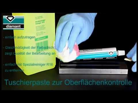 Diamant Engineer’s marking paste for Surface Quality ChecksDiamant surface pastes are highly efficient contrast mediums for identifying work piece contact patterns and for the inspection of mechanical work.Evenness of applied colour coating indicates quality of machine finish.Removable with High-performance Cleanser R 16.Temperature range: -10 bis +40 °CVolume: 70 gColor: Red Information on product safety (Manufacturer, Contact)Artur Glöckler GmbH, Poststr.6, D-63796 Kahl am Main, +49 6188 9174 0, , www.gloeckler.com