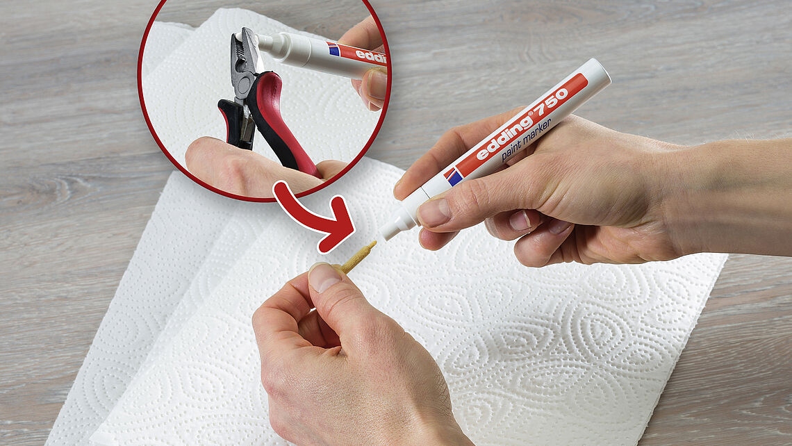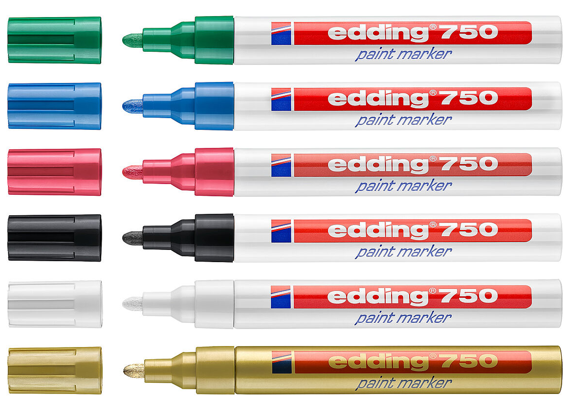 Paint marker for highly opaque and permanent labelling even on dark and transparent materials, e.g. metal, glass and plasticThe round nib has a stroke width of 2-4 mmThe paint-like ink is quick-drying, weatherproof, extremely lightfast and wear-resistantAll colours are heat-resistant up to 400 °CThe colour white remains visible at up to 1000 °CThe colour white is recommended by Lufthansa TechnikSuitable spare nibs (edding 750 spare nibs) are availableLow-odour ink with no added toluene/xyleneHigh-quality aluminium barrelMade in GermanySpecificationsShape of nib: round nibStroke width: 2-4 mmSpare nibs availablePermanentLow odourWaterproofWear resistantSmudge-proofLightfastExtremely lightfastQuick-drying
