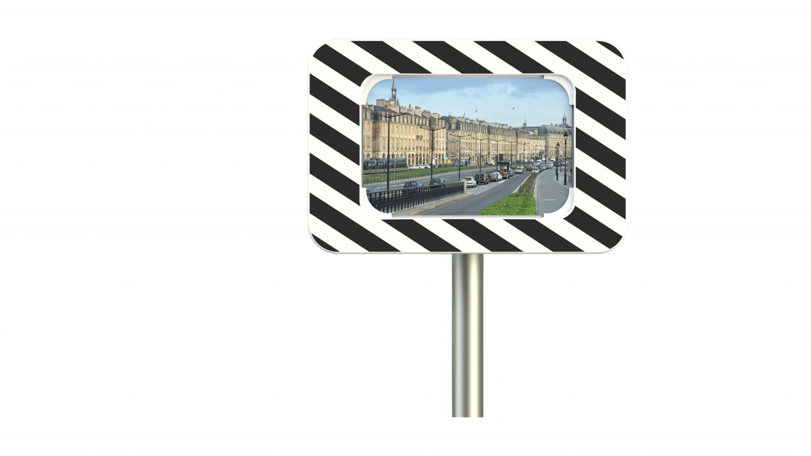 With white / black frame corresponds to a French traffic law of September 21, 1981Technical specificationsSize: 40 x 60 cmFrame size: 61 x 91 cmObservation distance: 9-15 mFrame material: ABS / PMMA shock resistantMirror material: acrylicWeight: 5,8 kgColor: black / whiteAssembly: for posts 50 – 85 mmFor indoor and outdoor useUV-resistantWarranty: 2 yearsFixingA 4-point ball joint mounting bracket is included in the scope of delivery.This special bracket makes an optimal fixation of the mirror possible.The mirror can be positioned at different angles for every application.Can either be installed directly on a wall or a post mounting (Ø 50-85 mm). Information on product safety (Manufacturer, Contact)Dancop International GmbH, Wilhelm-Rausch-Strasse 15, 31228 Peine-Stederdorf, GERMANY, +49 5171 585690, , www.dancop.com
