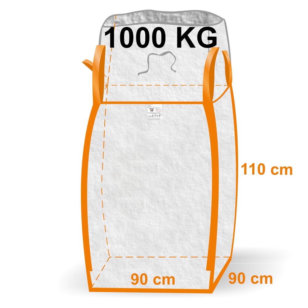 Empty FIBC Bulk Bag 90 x 90 x 110 cm (approx 1m³) for non-hazardous goods Coated PP fabricDuffle Top with lid for tyingFlat bottom4 heavy duty corner straps (forkliftable)Standard: DIN EN ISO 21898 (Flexible intermediate bulk container (FIBC) for non-hazardous goods)Material: PolypropyleneBrand: TectorDimensions: 90 x 90 x 110 cm (35 x 35 x 43)Nominal load: 1 ton (2200 lbs)Safety factor: 5:1 (breaking load)Recommandation: With our this spout bottom bulk bag can be partially emptied with ease.Tector 84740, BigBags, Big-Bag Information on product safety (Manufacturer, Contact)HELMUT FELDTMANN GmbH, Zunftstraße 28, 21244 Buchholz, 04181/2004-0,