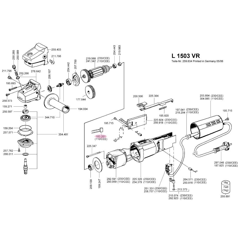 FLEX 183.261 Condenser X2 0,22µF, 110VOriginal FLEX spare part Information on product safety (Manufacturer, Contact)FLEX-Elektrowerkzeuge GmbH, Bahnhofstraße 15, 71711 Steinheim, GERMANY, +49 7144 828 0, , www.flex-tools.com