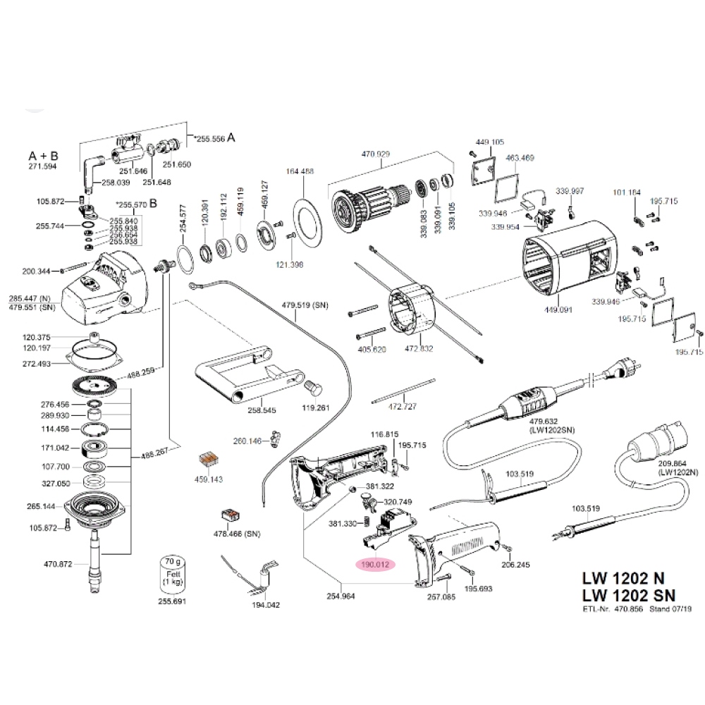 Switch for LW1202 T23/32, 1263.0301125-250 V ACOriginal FLEX spare part Information on product safety (Manufacturer, Contact)FLEX-Elektrowerkzeuge GmbH, Bahnhofstraße 15, 71711 Steinheim, GERMANY, +49 7144 828 0, , www.flex-tools.com