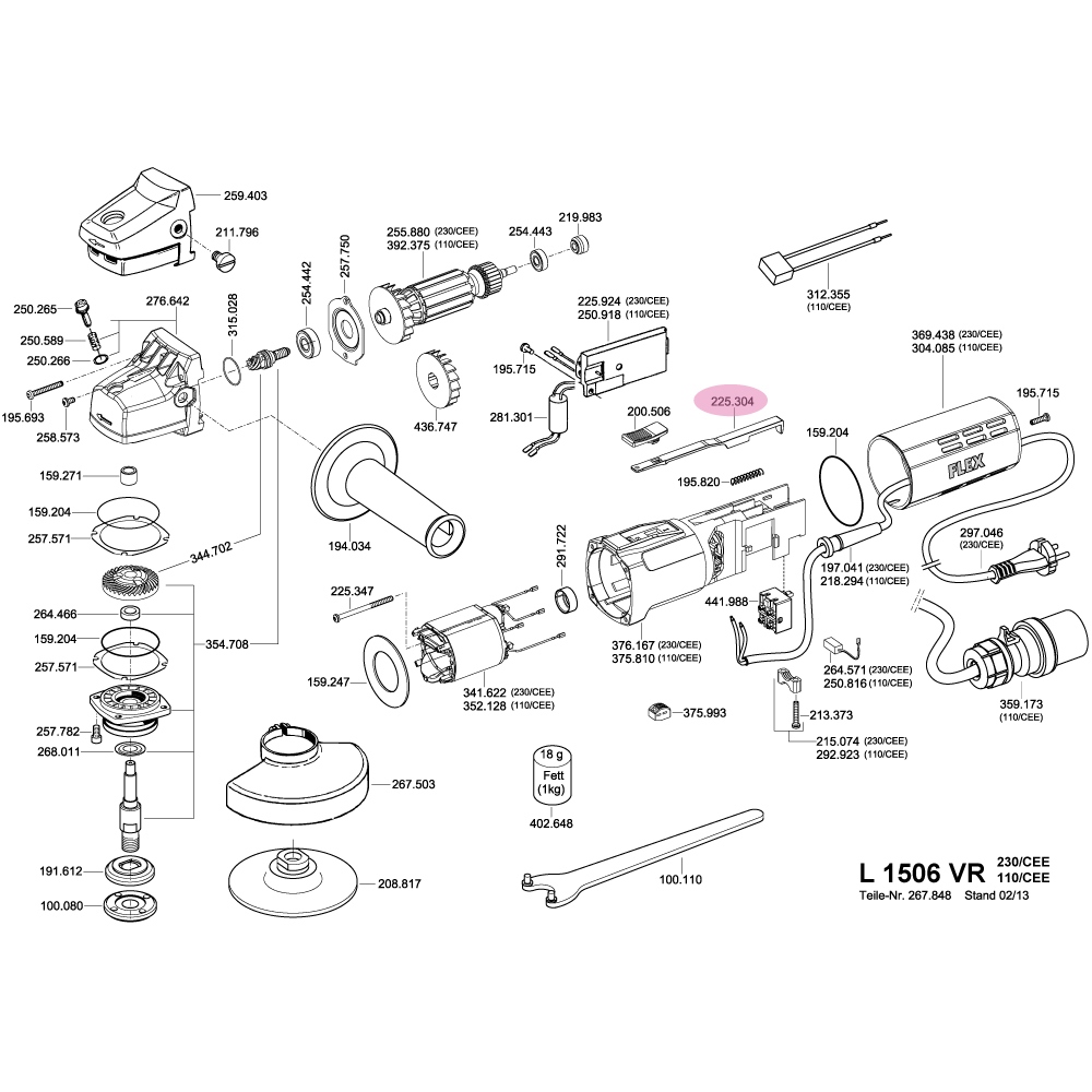 FLEX 225.304 Switch barOriginal FLEX spare part Information on product safety (Manufacturer, Contact)FLEX-Elektrowerkzeuge GmbH, Bahnhofstraße 15, 71711 Steinheim, GERMANY, +49 7144 828 0, , www.flex-tools.com