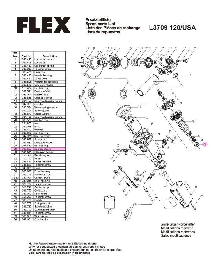 336.653 Bearing ring for L3709 Information on product safety (Manufacturer, Contact)FLEX-Elektrowerkzeuge GmbH, Bahnhofstraße 15, 71711 Steinheim, GERMANY, +49 7144 828 0, , www.flex-tools.com