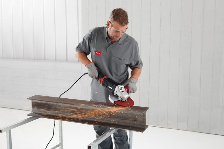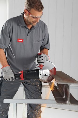 Robust motor housing and gearbox housing Stable and robust steel gearbox as well as a spindle bearing protected byMetal cap increasing reliability and durabilityErgonomically designed and very slender motor housing provides optimum guidance and handlingAn additinal vibration damping ring between the motor housing and rear handle reduces the vibrationsSoftVib handgrip for reduced vibration can be mounted in three positionsRear shaft handle with soft padding for secure gripSwitch: with lockoff / lockon switchRestart protection after power interruptionSoftstart: for a soft start without power overloadingSpindle lockToolfree adjustment of safety guardCutting guard, optional accessory (oder no 389625)SpecificationsMax disc diameter 230 mmNo load speed 6500 rpmPower input 2100 wattPower output 1250 wattTool fixture M 14Clamping neck Ø 64 mmCable length 4,0 mWeight: 4,9 kgStandard equipment1 guard grinding 230 Ø 3387291 SoftVib handle 3253841 pin wrench BL 5 1001101 clamping flange 3387531 clamping nut M14 100080 Information on product safety (Manufacturer, Contact)FLEX-Elektrowerkzeuge GmbH, Bahnhofstraße 15, 71711 Steinheim, GERMANY, +49 7144 828 0, , www.flex-tools.com