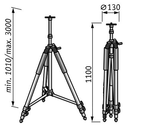 Stable elevator tripod with adjustable crank column and extractor column. With 5/8 connection and rubber feet which can be unscrewed. Very handy, when pushed together only 1.10 m with carrying strapWork area from 1,01 to 3,00 mAdjusting range of the clamping column 0,36 mAdjusting range of the extraction column 0,43 mAdapter 5/8 internal thread on 1/4 includedTechnical attributesWorking range 1,01 – 3,00 mConnection thread 5/8Weight 5,7 kgStandard equipment1 carrying strap 1 piece1 adapter LAD 5/8 I-1/4 A 398.608 Information on product safety (Manufacturer, Contact)FLEX-Elektrowerkzeuge GmbH, Bahnhofstraße 15, 71711 Steinheim, GERMANY, +49 7144 828 0, , www.flex-tools.com