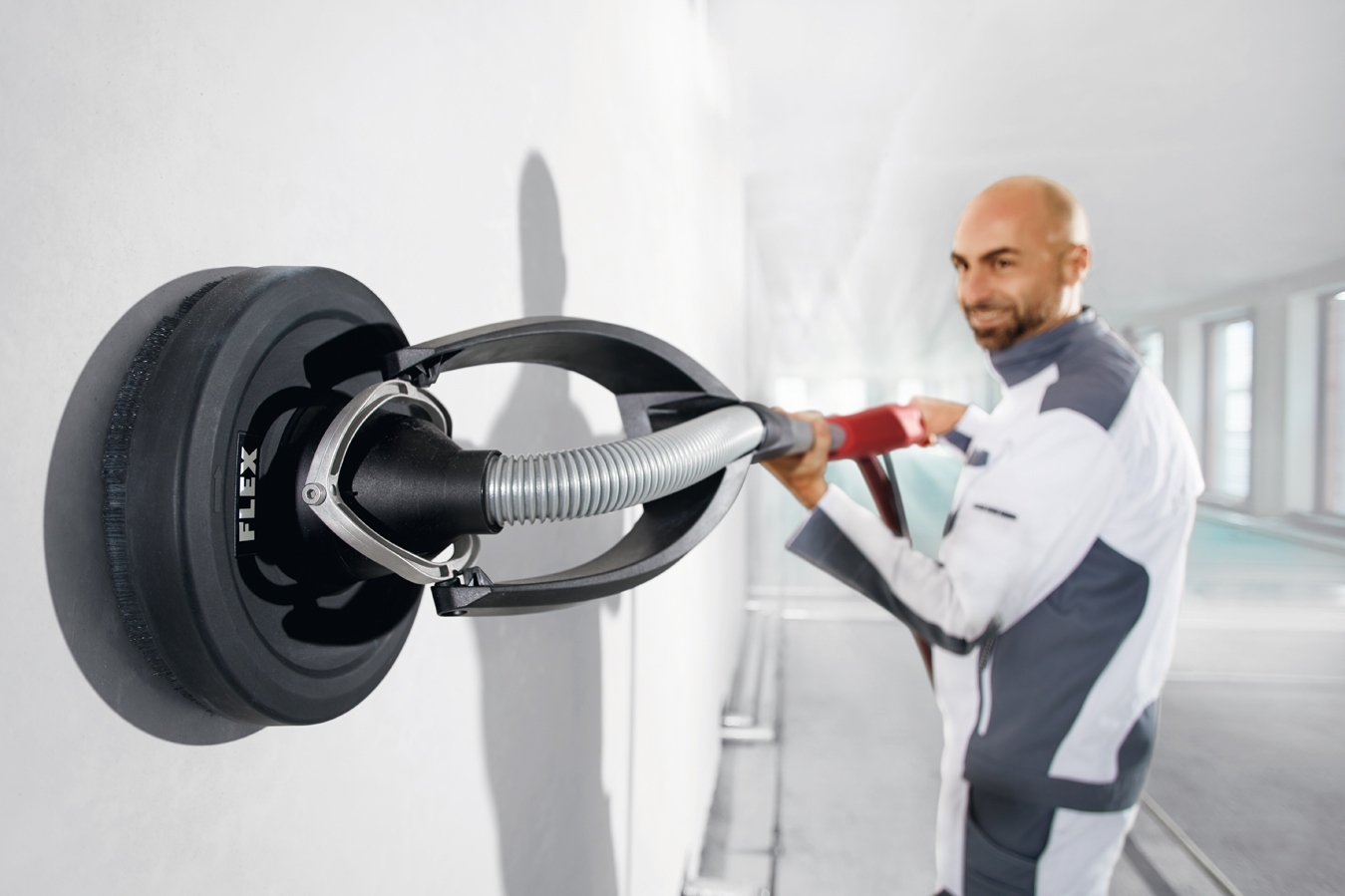 Electronic: controlled constant speed, soft-start, overload protection and speed selection with adjuster wheelVery handy, light-weight machine with optimum ease of operation. Provides comfortable and ergonomic working conditionsEasy guiding: by optimal balance between motor and sanding headReliable force transmission and high flexibility thanks to the flexible drive shaft from. For decades established “FLEX technology”. Thanks to this design principle the weight on the head of the Giraffe is reduced to a minimum. This facilitates handling.Gimbal-mounted sanding head provides high flexibility and optimum adjustment for sanding walls and ceilings.Effective dust extraction from between the brush ring and the sanding pad prevents clogging of the abrasive and promotes a dust-free working environmentOption of connecting the FLEX safety vacuum cleaners to the FLEX clip-system on the guide tubeEasy handling thanks to ergonomically shaped guide tube made of aluminium. Optionally an auxiliary handle (accessory) can be attachedDust-proof on/off switchVery flexible thanks to an optional 500 mm extension (accessory) for high rooms, can be attached without any toolsAccording to the assortment of sanding paper ideally suited for sanding plaster boards, solid styropor insulation slabs, preparation for painting, polishingVery large areas and rooms up to 3.20 m in height can be processed thanks to the optional application of the GM 320The innovative, textile transport system allows the machine and accessories to be transported effortlessly. The Giraffe® does not have to be mounted and is immediately ready for useTechnical attributesPower input 500 wattPower output 270 wattNo load speed 1100-1650 rpmSanding disc Ø 225 mmTool fixture velcroTilt angle on the head 100 °Length1 520 mmCable length 5,0 mWeight 3,9 kgStandard equipment1 velcro sanding disc supersoft 399.4181 clip-on quick clamping ring SH-FC 32 406.023Antistatic suction hose 32 mm Ø x 4 m with snap coupling and coupling bush for vacuum cleaner, with auxiliary air control 406.7081 carrying bag 408.867 Information on product safety (Manufacturer, Contact)FLEX-Elektrowerkzeuge GmbH, Bahnhofstraße 15, 71711 Steinheim, GERMANY, +49 7144 828 0, , www.flex-tools.com