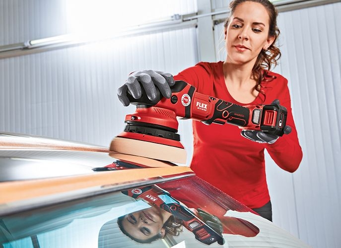 Electronic management system (EMS) protects the machine, extends the service life, and increases efficiencyBrushless motor with greater efficiency and a longer service lifeLED battery capacity displayFree-spinning drive for hologram-free finishing15 mm orbit for high efficiencyContinuous speed control trigger: for a gentle start and a lock-on for continuous operationCushioned special hook and loop pad for polishing.Counterweight for smoother operationFlat gear head reduces distance to the surface. The machine can therefore be operated safely in any position.Grip hood: ergonomically shaped with SoftGrip. The machine can be controlled with precision and is always comfortable yet secure to hold.Low heat generation on the surface makes it ideal for temperature-sensitive paintsSpecificationsMax. polishing pad diameter 160 mmMax. back-up pad diameter 150 mmOrbit 15 mmNo load speed 2300-3800 rpmOrbit rate, no load 4600-7600 opmBattery voltage 18 VBattery capacity 2,5 / 5,0 AhSize (L x H) 380 x 140 mmWeight without battery 2,1 kgEquipment1 velcro pad 125 Ø 442.4452 batteries 5.0 Ah AP 18.0/5.0 445.8941 charger CA 10.8/18.0 417.8821 case insert 459.5261 carrying case L-BOXX® 238 414.093 Information on product safety (Manufacturer, Contact)FLEX-Elektrowerkzeuge GmbH, Bahnhofstraße 15, 71711 Steinheim, GERMANY, +49 7144 828 0, , www.flex-tools.com