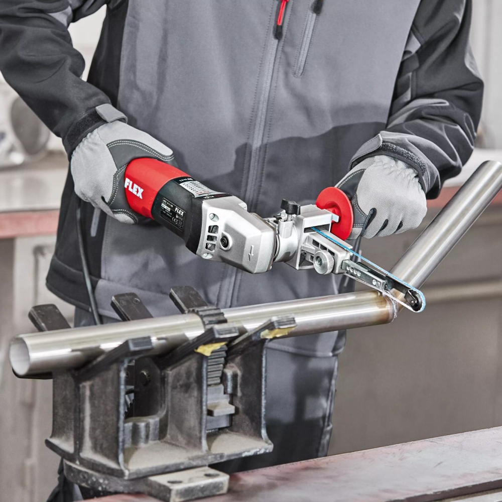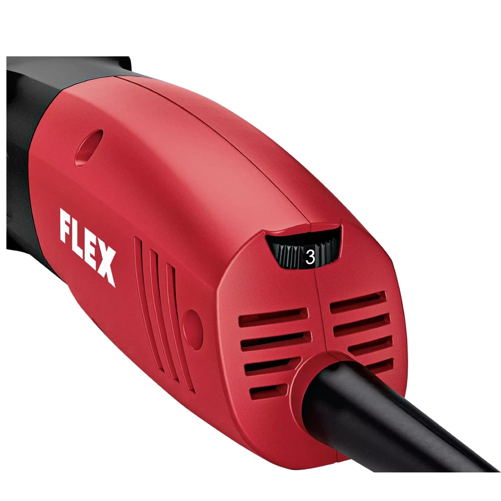 Microprocessor control: speed selection, tachogenerator constant speed control, soft start, restart protection after power failure, overload protection and temperature monitoringUnique tool attachment with quickaction coupling for toolfree changing of the system attachments for burnishing and pipe belt sandingToolfree grinding tool change via a patented quickchange systemCompletely cast electronic components prevents damage due to metal dustThe 3fold winding protection reduces motor wear, increases service lifeSinglepole switchSpindle lockTechnical attributes Power input: 1400 wattPower output: 880 wattMax tool Ø: 125 mmTool width: 100 mmTool fixture: Quickfit couplingNo load speed: 1000-3500 rpmCable length: 4,0 mWeight: 2,1 kg Information on product safety (Manufacturer, Contact)FLEX-Elektrowerkzeuge GmbH, Bahnhofstraße 15, 71711 Steinheim, GERMANY, +49 7144 828 0, , www.flex-tools.com