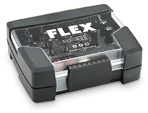 Set consisting of 18 high-performance torsion bits: 2x T102x T152x T202x T252x T302x T40Ph1Ph2Ph3Pz1Pz2Pz3quick-lock bit holderSuitable for the following machines DD 2G 10.8-LD/4.0 SetDD 2G 10.8-ECDD 2G 10.8-EC/4.0 SetPD 2G 10.8-ECPD 2G 10.8-EC/6.0 SetDD 2G 18.0DD 2G 18.0/2.5 SetDD 2G 18.0-ECDD 2G 18.0-EC/2.5 SetPD 2G 18.0PD 2G 18.0/2.5 SetPD 2G 18.0-ECPD 2G 18.0-EC/2.5 Set Information on product safety (Manufacturer, Contact)FLEX-Elektrowerkzeuge GmbH, Bahnhofstraße 15, 71711 Steinheim, GERMANY, +49 7144 828 0, , www.flex-tools.com