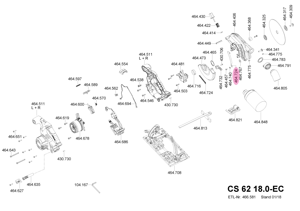 FLEX 464.724 Tension spring for CS 62 18.0Original FLEX spare part Information on product safety (Manufacturer, Contact)FLEX-Elektrowerkzeuge GmbH, Bahnhofstraße 15, 71711 Steinheim, GERMANY, +49 7144 828 0, , www.flex-tools.com