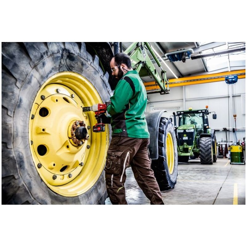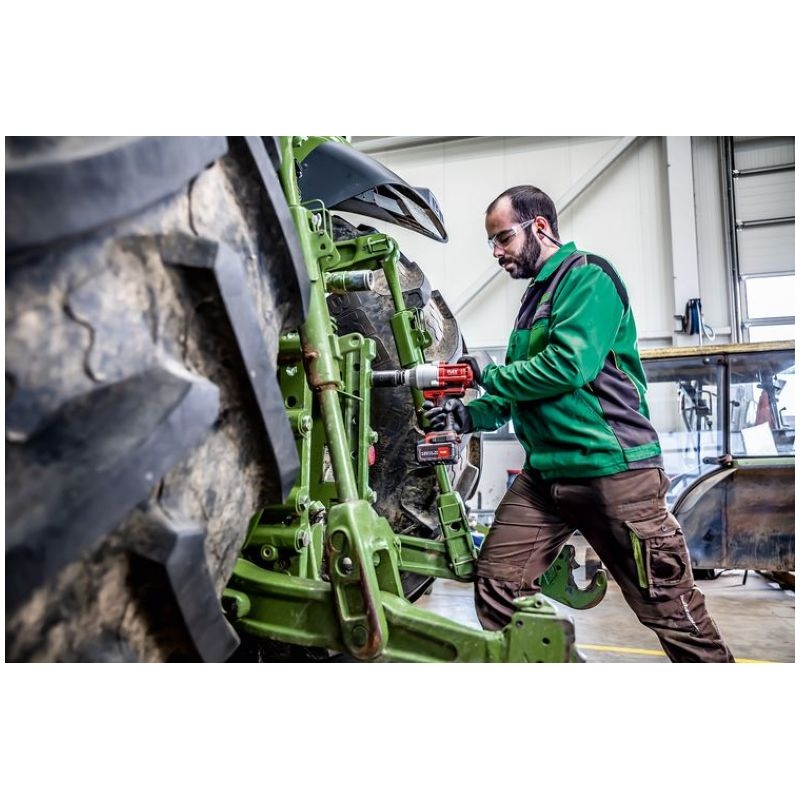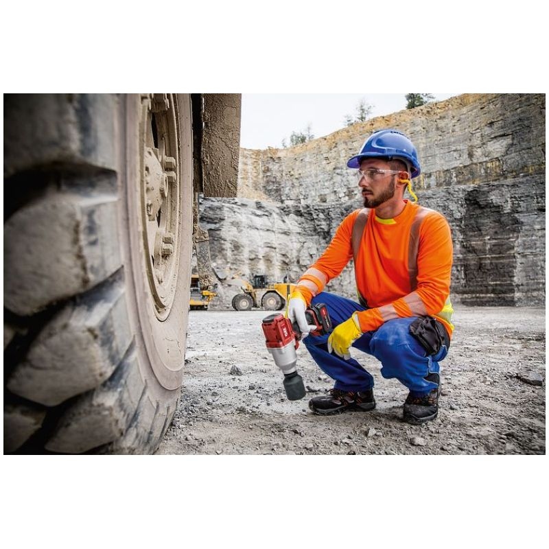 Cordless impact wrench 18.0 V with IW 3/4 square socket for impact nutsElectronic management system (EMS) protects the machine, extends the service life, and increases efficiencyBrushless motor with greater efficiency and a longer service lifeElectronic quick-acting brakeVariable speed controlAccelerator trigger with lock-off switchRobust gearbox housing made of die-cast aluminiumPowerful impact mechanism for maximum performance enables for example stuck or rusted screw connections to be loosened even in extreme applicationsTool holder square drive for 3/4 impact socketsDamping element seperates hand grip from motor, bringing significant reduction in vibration transmissionErgonomically designed, non-slip, soft grip handleIntegrated LED lamp with persistence functionLED battery capacity displayFLEX battery system: suitable for all 18,0 V battery packs. Delivery does not include battery and chargerSpecifications Battery voltage 18 VBattery capacity 2,5 / 5,0 AhMax. torque 1060 NmTorque positions 3 (300 / 590 / 1060 Nm)Loosening torque 1680 NmNo load speed 0-900 / 1000 / 1700 rpmBlows per minute 0-1800 / 2000 / 2200 bpmTool fixture 3/4Size (W x L x H) 230 x 82 x 238 mmWeight without battery 3,3 kg Information on product safety (Manufacturer, Contact)FLEX-Elektrowerkzeuge GmbH, Bahnhofstraße 15, 71711 Steinheim, GERMANY, +49 7144 828 0, , www.flex-tools.com