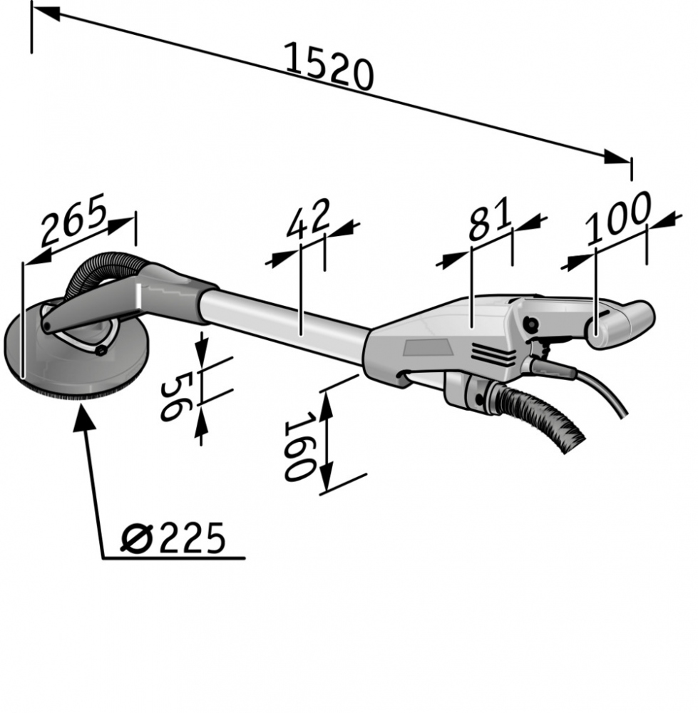 GE 7 + MH-O Giraffe® wall and ceiling sander with interchangeable head system | Flex N° 494.461Electronic: controlled constant speed, soft-start, overload protection and speed selection with adjuster wheelVery handy, light-weight machine with optimum ease of operation. Provides comfortable and ergonomic working conditionsFitted with innovative interchangeable head system. Sanding heads are attached and removed with a clickRound sanding head for standard grinding of wallsEasy guiding: by optimal balance between motor and sanding headReliable force transmission and high flexibility thanks to the flexible drive shaft from. For decades established “FLEX technology”. Thanks to this design principle the weight on the head of the Giraffe is reduced to a minimum. This facilitates handling.Gimbal-mounted sanding head provides high flexibility and optimum adjustment for sanding walls and ceilings.For detailed information view our Technical specificationsPower input: 710 wattPower output: 410 wattNo load speed: 1100-1650 rpmSanding disc Ø: 225 mmTool fixture: velcroTilt angle on the head: 100 °Cable length: 5,0 mLength: 1520 mmWeight: 4,2 kgIncluded in delivery1x round sanding head MH-O | Flex N° 457.1751x clip-on quick clamping ring SH-FC 32 | Flex N° 406.0231x carrying bag | Flex N° 408.867
