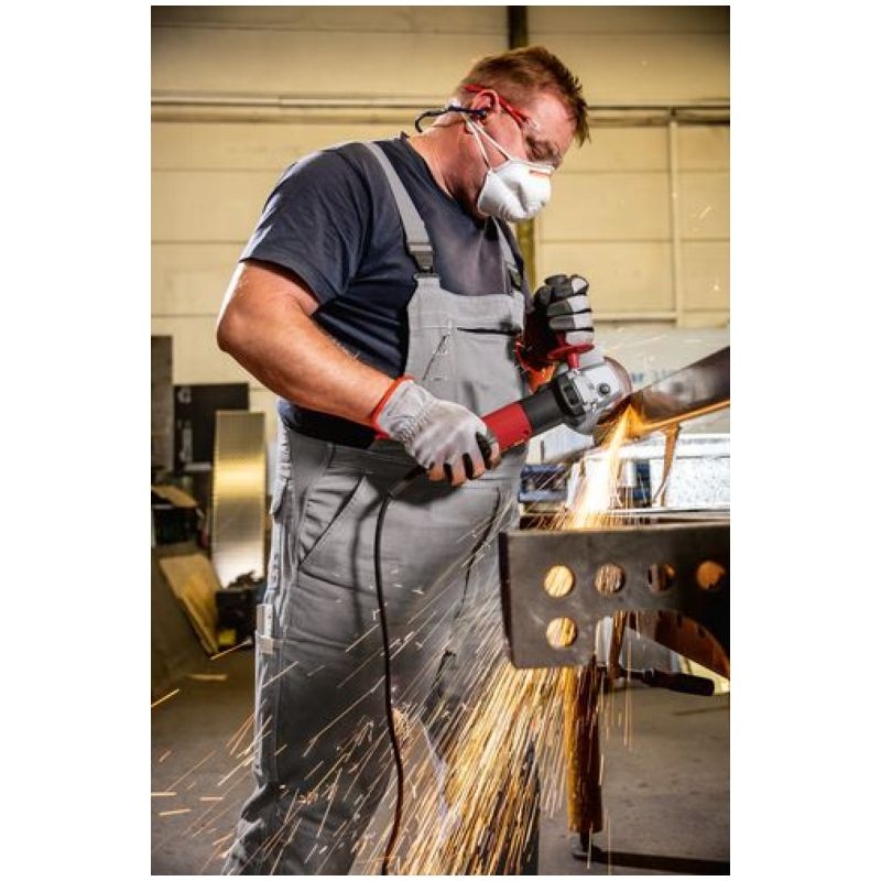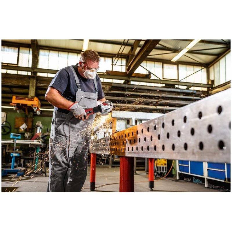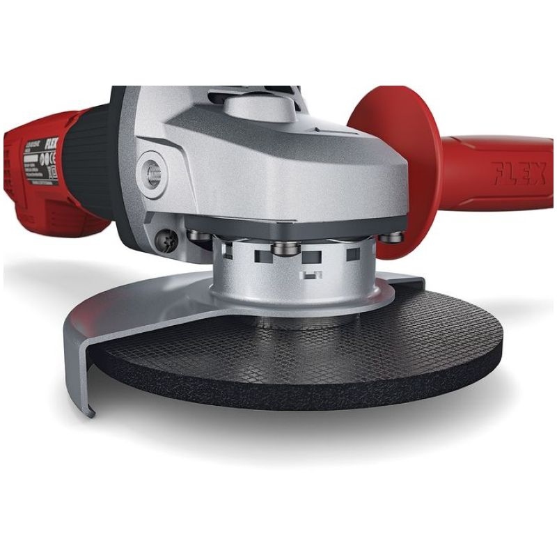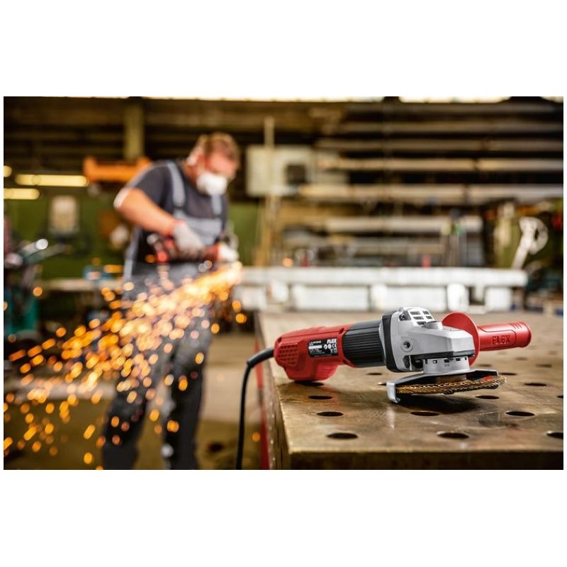1300 watt angle grinder with brushless motor, 125 mmBrushless motor with greater efficiency and a longer service lifeMicroprocessor control with soft start, restart protection after power failure, temperature monitoring, overload protection, CDC-electronic feedback controlAnti-Kickback – this shuts down the motor on the disc being blockedPerfect dust protection thanks to removable protective metal grilleExtremely streamlined handle section for perfect handlingMore ergonomic handling due to inclined side handleExtremely light and handyTool-free adjustment of safety guardSpindle lockThis universal angle grinder is suited for steel/metal surface finishing, for work on the site/renovation as well as for vehicle bodywork and construction firmsSide handgripSpecificationsMax. disc diameter 125 mmNo load speed 10000 rpmPower input 1300 wattPower output 910 wattTool fixture M 14Cable length 4,0 mSize (W x L x H) 295 x 75 x 110 mmWeight 2,0 kgEquipment1 guard grinding 125 Ø 436.8601 handle 437.9211 clamping flange 335.2821 clamping nut M14 100.0801 pin wrench 100.110 Information on product safety (Manufacturer, Contact)FLEX-Elektrowerkzeuge GmbH, Bahnhofstraße 15, 71711 Steinheim, GERMANY, +49 7144 828 0, , www.flex-tools.com