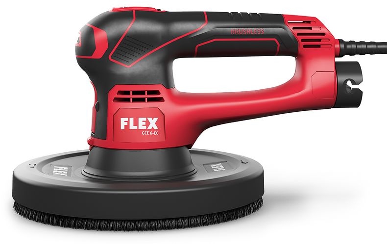 Handy Giraffe GCE 6-EC wall and ceiling sander with L-BOXX®Electronic control: stepless speed selection, constant speed, overload protection and temperature monitoringBrushless motor with greater efficiency and a longer service lifeCompletely cast electronic components prevents damage due to metal dust. The 3-fold winding protection reduces motor wear, increases service lifeGrip hood for easy handling and precise workingFitted with innovative interchangeable head system. Sanding heads are attached and removed with a clickEffective dust extraction from between the brush ring and the sanding pad prevents clogging of the abrasive and promotes a dust-free working environmentDefined hose guidance and effective dust extraction due to large hose cross-section. The suction hose is directly attached to the tool by the FLEX clip-systemLightweight and easy-to-use on small surfaces, tight spacesIdeally suited for sanding plaster boards, solid styropor insulation slabs, preparation for paintingMachine without sanding head as an addition for the Giraffe® GE 7Technical data Power consumption: 600 wattsPower output: 400 wattsIdle speed: 1100-1650 / minIdle stroke rate (MH-T): 3800-5700 / minIdle stroke rate (MH- X): 3100-4600 / minGrinding wheel diameter: 225mmDimensions (L x B x H) 300 x 110 x 150mmDimensions with head (L x B x H) 360 x 260 x 210mmLength of cable: 4,0mWeight without head: 1,2 kgScope of delivery 1 L-BOXX® transport case (414.107)1 case insert (500.798) Information on product safety (Manufacturer, Contact)FLEX-Elektrowerkzeuge GmbH, Bahnhofstraße 15, 71711 Steinheim, GERMANY, +49 7144 828 0, , www.flex-tools.com