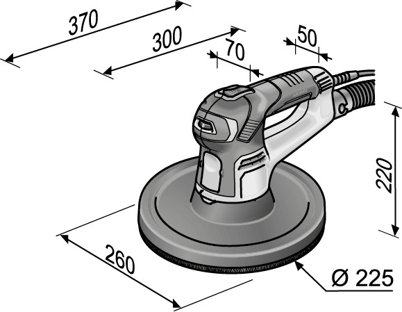 Handy Giraffe GCE 6-EC Kit MH-R wall and ceiling sander with interchangeable head systemElectronic control: stepless speed selection, constant speed, overload protection and temperature monitoringBrushless motor with greater efficiency and a longer service lifeCompletely cast electronic components prevent damage due to metal dust. The 3-fold winding protection reduces motor wear, increases service lifeGrip hood for easy handling and precise workingFitted with innovative interchangeable head system. Sanding heads are attached and removed with a clickSegment sanding head with rotatable edge segment. This allows the sanding of surface transitions from wall to wall and wall to ceiling.The head’s rotation follows the movement of the machine, without interruption of work.Effective dust extraction from between the brush ring and the sanding pad prevents clogging of the abrasive and promotes a dust-free working environmentDefined hose guidance and effective dust extraction due to large hose cross-section. The suction hose is directly attached to the tool by the FLEX clip-systemLightweight and easy-to-use on small surfaces, tight spacesIdeally suited for sanding plaster boards, solid styropor insulation slabs, preparation for paintingTechnical specificationsPower consumption: 600 wattsPower output: 400 wattsIdle speed: 1100-1650 / minIdle stroke rate (MH-T): 3800-5700 / minIdle stroke rate (MH- X): 3100-4600 / minGrinding wheel diameter: 225mmDimensions (L x B x H) 300 x 110 x 150mmDimensions with head (L x B x H) 360 x 260 x 210mmLength of cable: 4,0mWeight without head: 1,2 kgScope of delivery1 segment sanding head MH-R 457.1831 carrying case L-BOXX® 374 414.1071 case insert 500.798 Information on product safety (Manufacturer, Contact)FLEX-Elektrowerkzeuge GmbH, Bahnhofstraße 15, 71711 Steinheim, GERMANY, +49 7144 828 0, , www.flex-tools.com