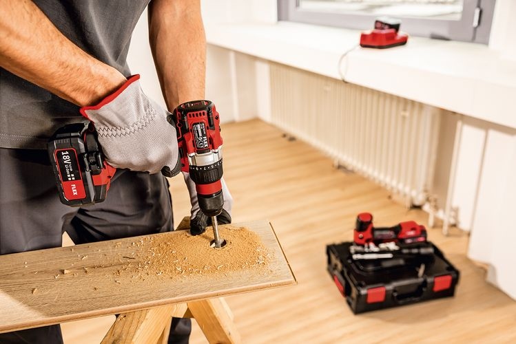 Flex 504.890 DD 2G 18.0-EC/5.0 2-speed cordless drill driver + Carrying case + Power setThe set includes1x DD 2G 18.0-EC/5.0 2-speed cordless drill driver1x handle | Flex N° 428.6981x belt clip | Flex N° 430.7141x bit holder | Flex N° 453.9941x bit storage | Flex N° 430.8622x batteries 5.0 Ah AP 18.0/5.0 | Flex N° 1x charger CA 10.8/18.0 | Flex N° 1x carrying case L-BOXX® 136 | Flex N° 1x case insert | Flex N° 454.125DD 2G 18.0-EC/5.0 2-speed cordless drill driver 18,0 VElectronic management system (EMS) protects the machine, extends the service life, and increases efficiencyBrushless motor with greater efficiency and a longer service lifeAccelerator trigger with lock-off switchElectronic quick-acting brakeRobust gearbox housing made of die-cast aluminiumMetal quick-clamp chuck with thrust ring and auto lock functionFor detailed information view our Technical specificationsBattery voltage: 18 VBattery capacity: 2,5 / 5,0 AhMax soft/hard torque: 56 / 90 NmTorque positions: 23+1No load speed 1st gear: 0-600 rpmNo load speed 2nd gear: 0-2300 rpmChuck Ø: 1,5 – 13 mmMax. drill hole Ø in steel: 13 mmMax. drill hole Ø in wood: 60 mmSize (W x L x H): 204 x 75 x 201 mmWeight without battery: 1,5 kg
