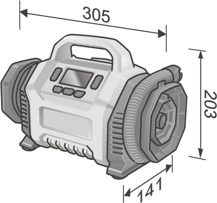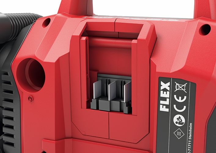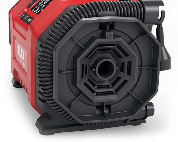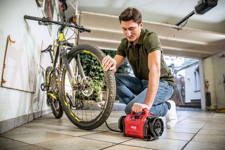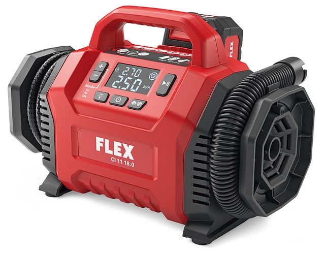 Flex 506.648 CI 11 18.0 Cordless inflator Electronic management system (EMS) protects the machine, extends the service life, and increases efficiencyClear, large operating elements for fast setting of the desired functionsPressure presetting with automatic switch-off when the desired pressure is reachedLow pressure outlet for highest air flowPressure indication for maximum control12 V vehicle voltage (via cigarette adapter) for filling car and bicycle tyresSuitable for high pressure and large volumes. Filling and emptying of e.g. air mattresses and other large-volume objectsLow weight in its performance class and ergonomic handle position for easy transportRobust gearbox housing made of die-cast aluminiumIntegrated LED lightLED battery capacity displayFLEX battery system: suitable for all FLEX 18,0 V battery packs. Delivery does not include battery and chargerTechnical specificationsBattery voltage: 12 / 18 Battery capacity: 2,5 / 5,0 AhMaximum pressure: 11 BarAir flow rate: 13 l/minWeight without battery: 1,9 kg