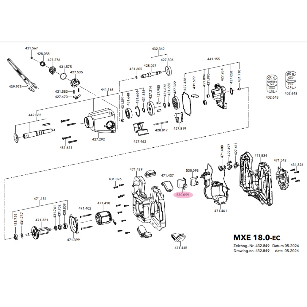 FLEX 530.099 Switch lock MXE 18.0Original FLEX spare part Information on product safety (Manufacturer, Contact)FLEX-Elektrowerkzeuge GmbH, Bahnhofstraße 15, 71711 Steinheim, GERMANY, +49 7144 828 0, , www.flex-tools.com