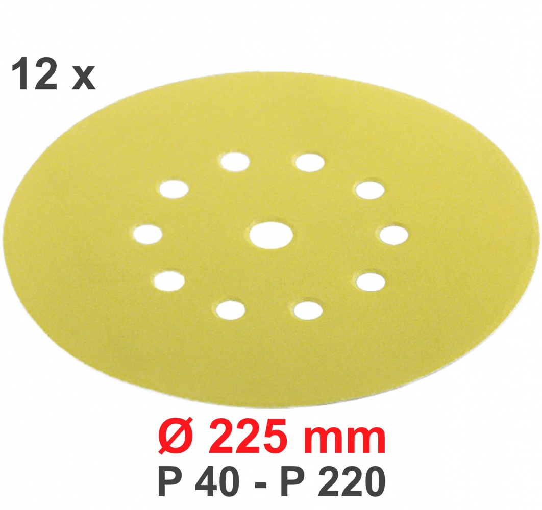Flex Hook-and-Loop Sandpaper 11-holes, Ø 225mm, P 40-220, 12 pcs